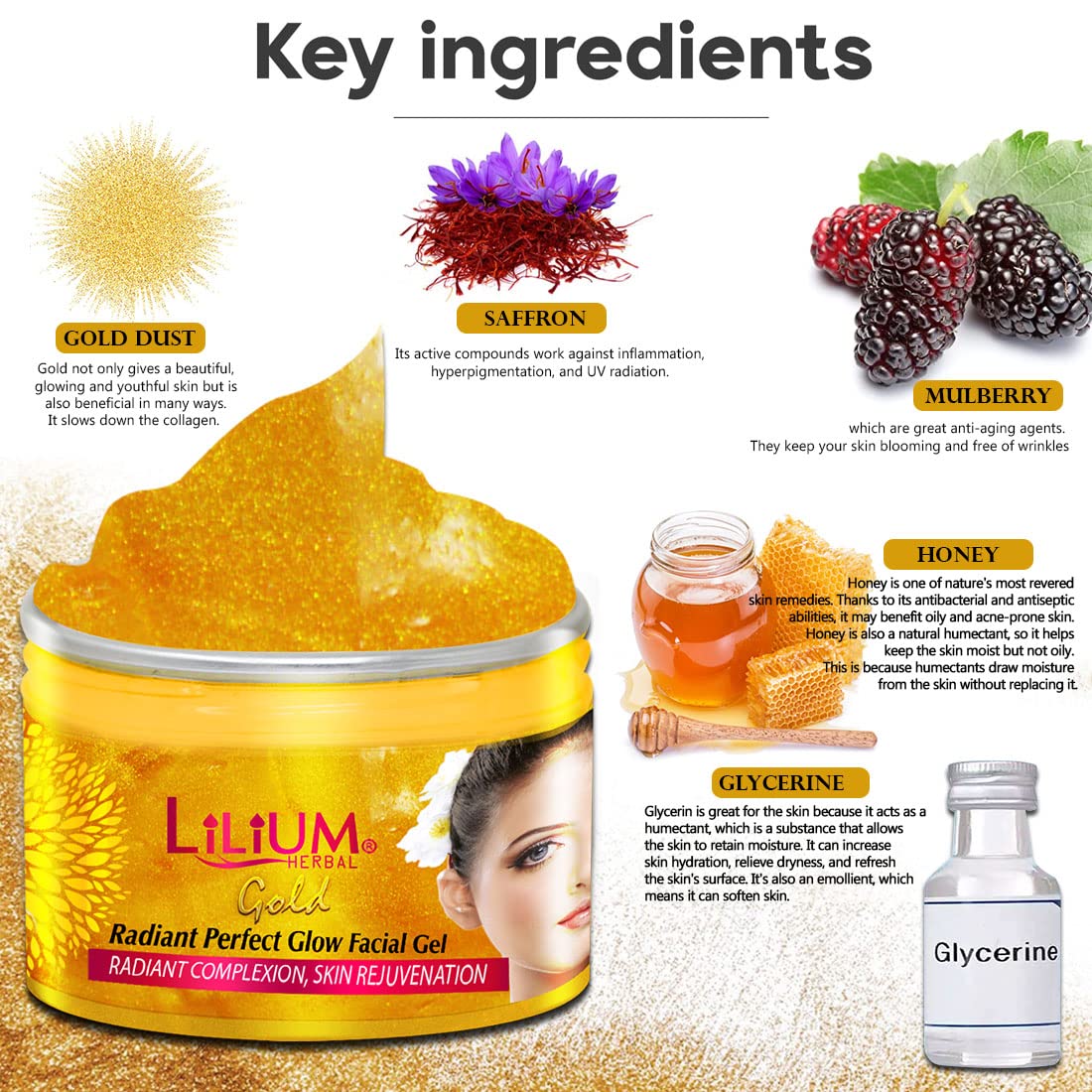 Lilium Gold Facial Kit With Scrub Cream Gel and Pack 1000g (1Kg)