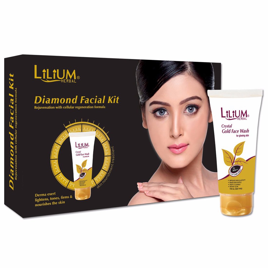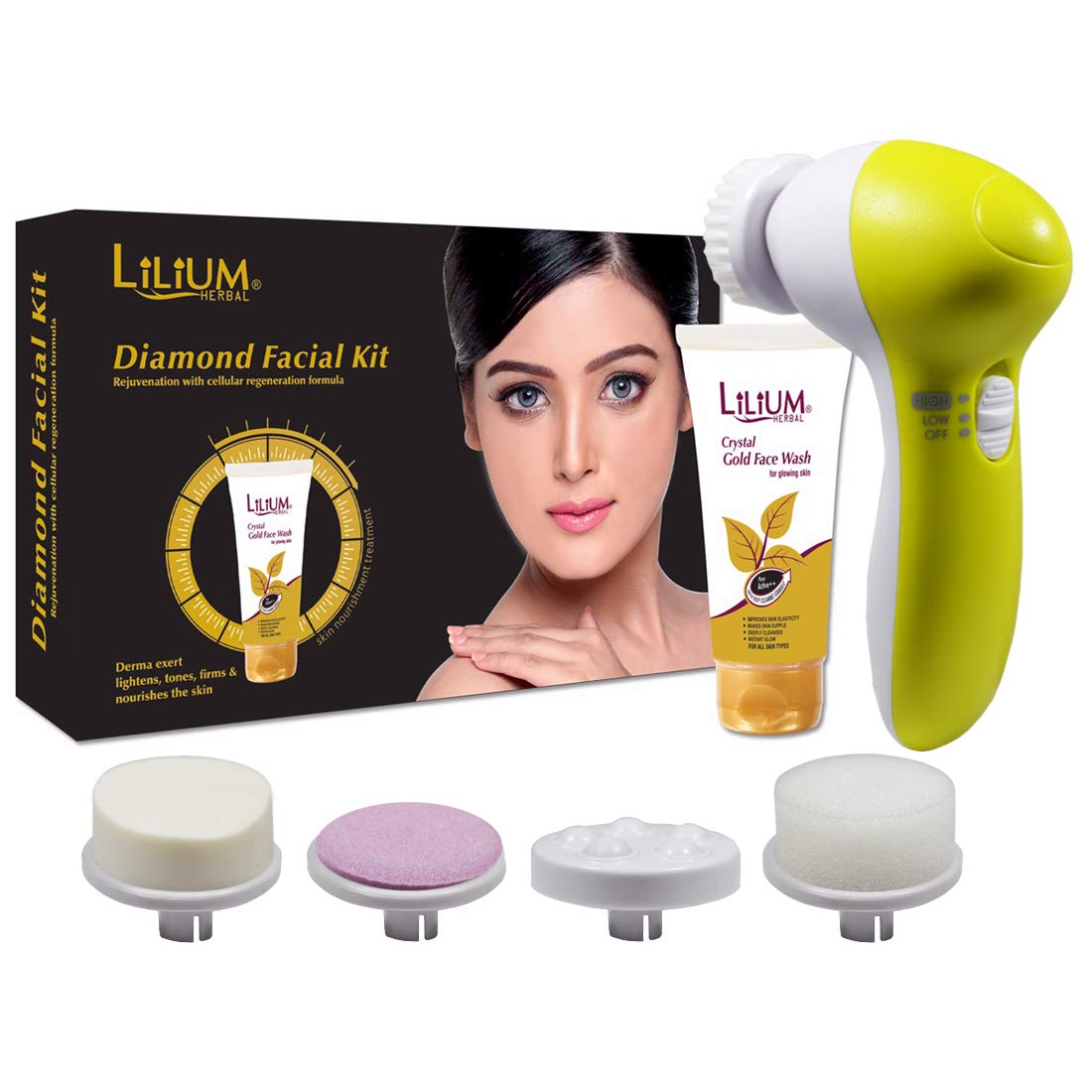 Lilium Herbal Diamond Facial Kit 80gm and Gold Face Wash 60 ml with Massager