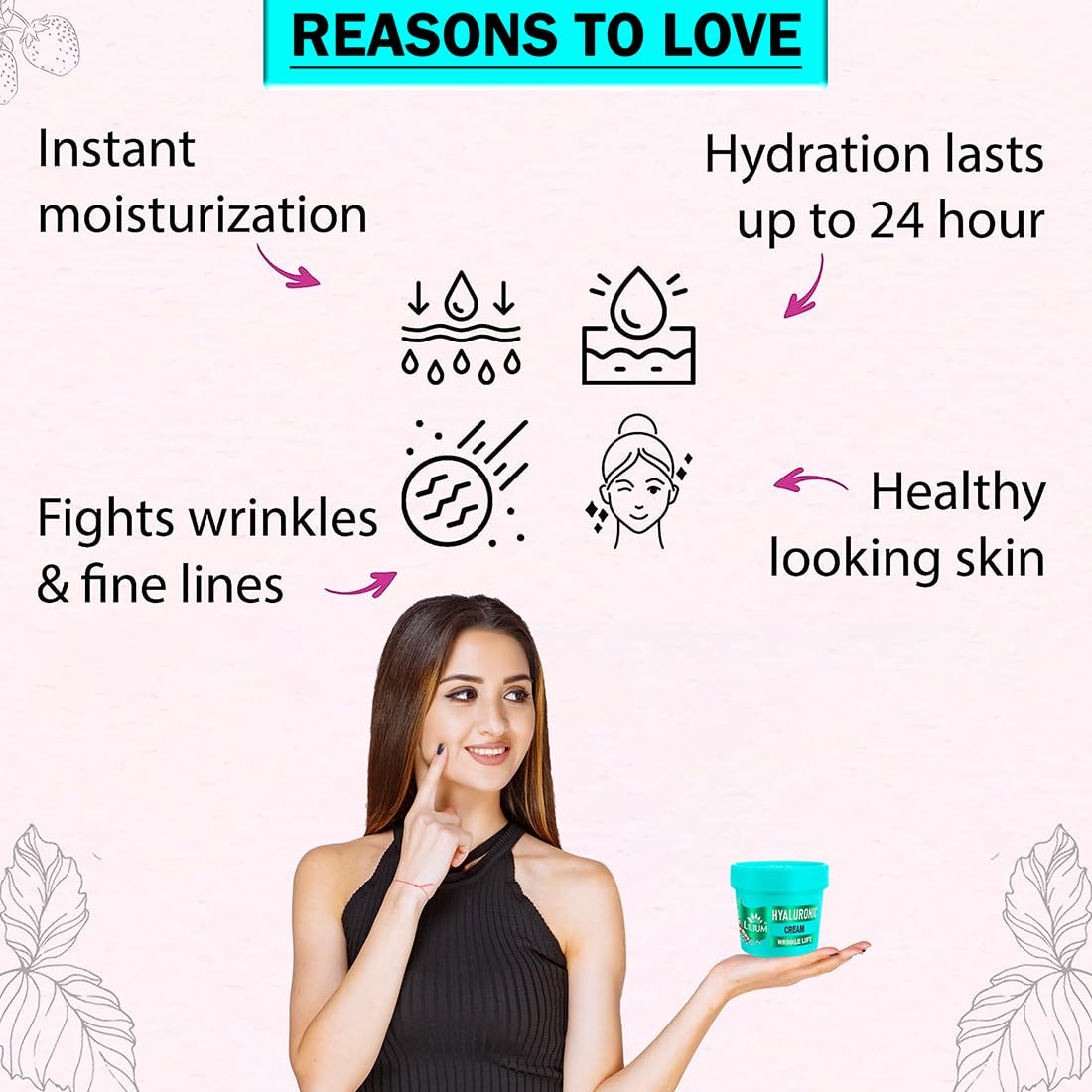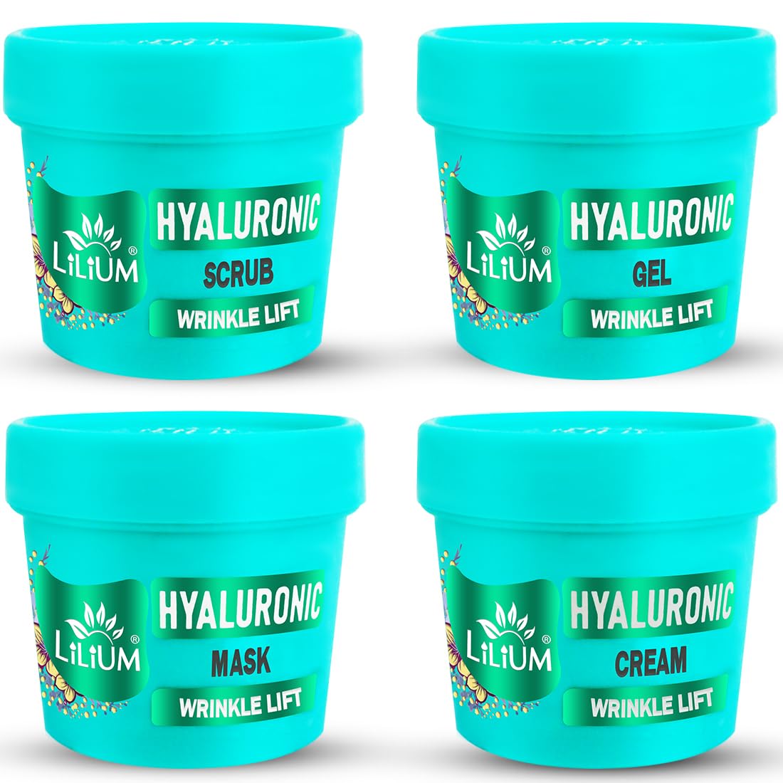Replenish and Renew: Our Hyaluronic Facial Kit Harnesses the Power of Natural Ingredients for Luxurious Skin Our Hyaluronic Facial Kit is meticulously curated with a harmonious blend of natural ingredients including: [1] Hyaluronic: A hydration marvel hyaluronic attracts and locks in moisture plumping the skin and diminishing the appearance of fine lines and wrinkles. [2] Aloe Vera: Renowned for its soothing properties aloe vera calms and nourishes the skin leaving it refreshed and revitalized. [3] Chamomile Extract: Gentle and anti-inflammatory chamomile extract helps soothe and even out the skin tone promoting a calm complexion. [4] Vitamin E: An antioxidant powerhouse vitamin E protects against free radicals supporting healthy radiant skin. [5] Jojoba Oil: Lightweight and easily absorbed jojoba oil balances the skin's natural oils while providing deep hydration. [6] Botanical Extracts: Infusions of botanical wonders like green tea or rosehip extract offer additional nourishment and rejuvenation. [7] Natural Exfoliants: Mild exfoliants gently buff away dull skin enhancing the efficacy of other ingredients for a radiant glow. [8] Essential Oils: Delicate blends of essential oils provide a sensory indulgence while offering benefits such as improved circulation and relaxation. Immerse yourself in the indulgent experience of our Hyaluronic Facial Kit a fusion of nature's finest ingredients that work synergistically to replenish renew and revitalize your skin. Elevate your skincare routine with this holistic approach for a truly pampering and transformative experience.