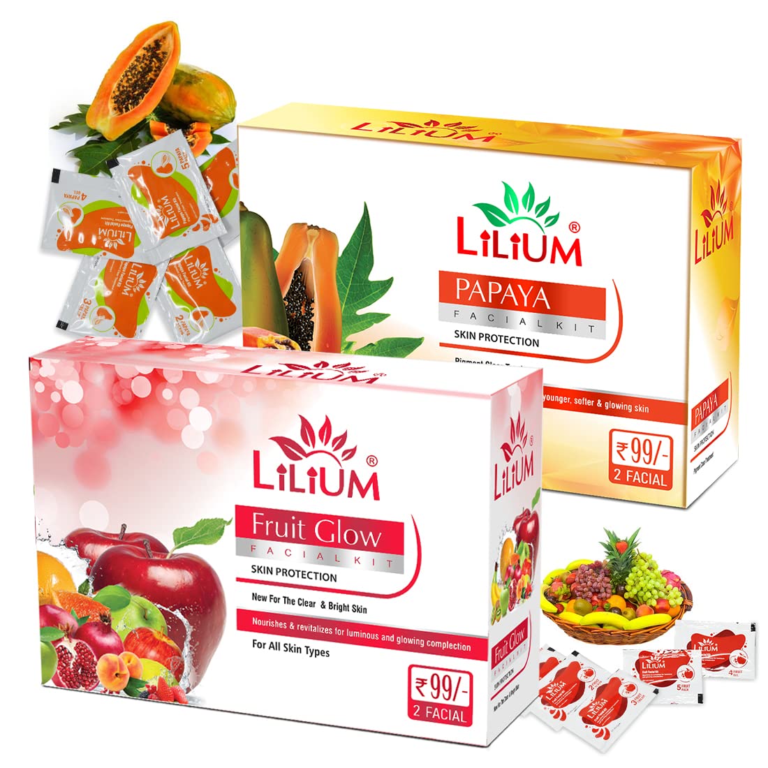 Lilium Papaya & Fruit Facial Kit Pack of 2 For Fairer Complexion Glowing Skin Nourishes & Revitalizer 60g