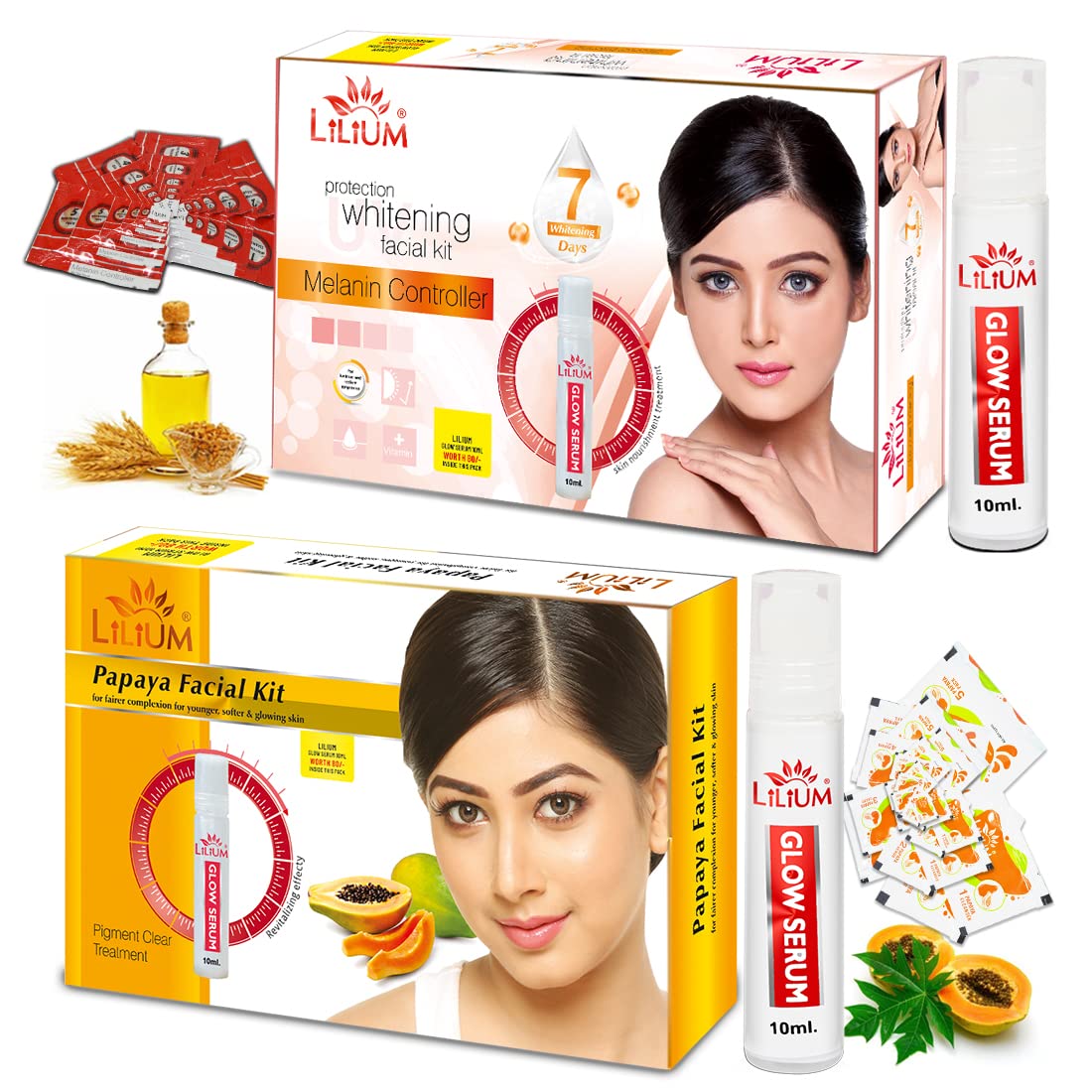 Lilium Papaya & Whitening Facial Kit Pack of 2 For Glowing Skin Luminous & Radiant Complextion 120g