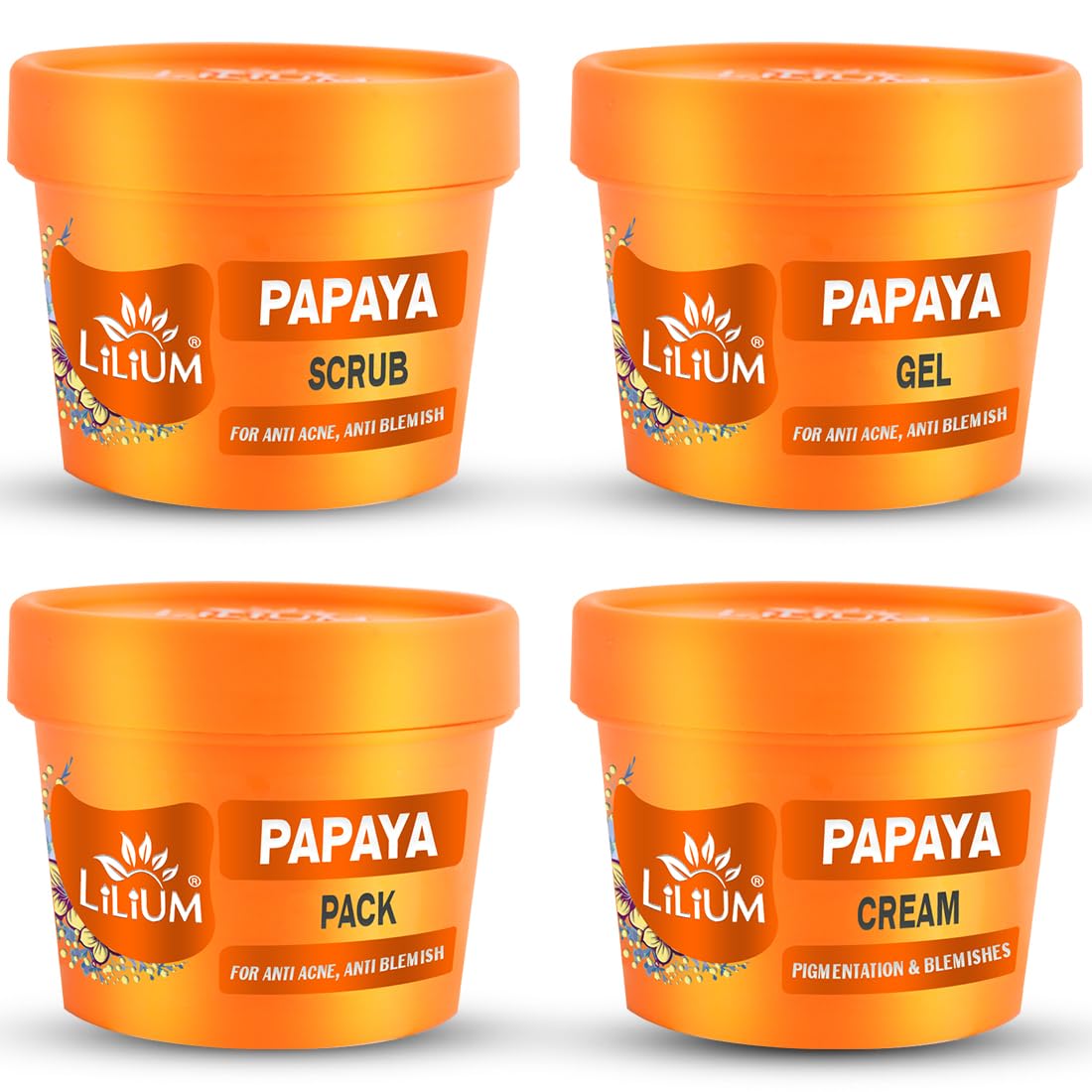 Unlock the glow of naturally radiant skin with Lilium Papaya Facial Kit crafted to perfection to enhance your skincare routine with the power of tropical papaya. Immerse yourself in the rejuvenating properties of this exotic fruit renowned for its exfoliating and brightening benefits. Designed to elevate your skincare routine to new heights. Unleash the natural radiance of your skin and embrace a brighter more youthful-looking complexion with lilium Papaya Facial Kit. Add it to your cart now and let nature's secret exfoliant work its magic.