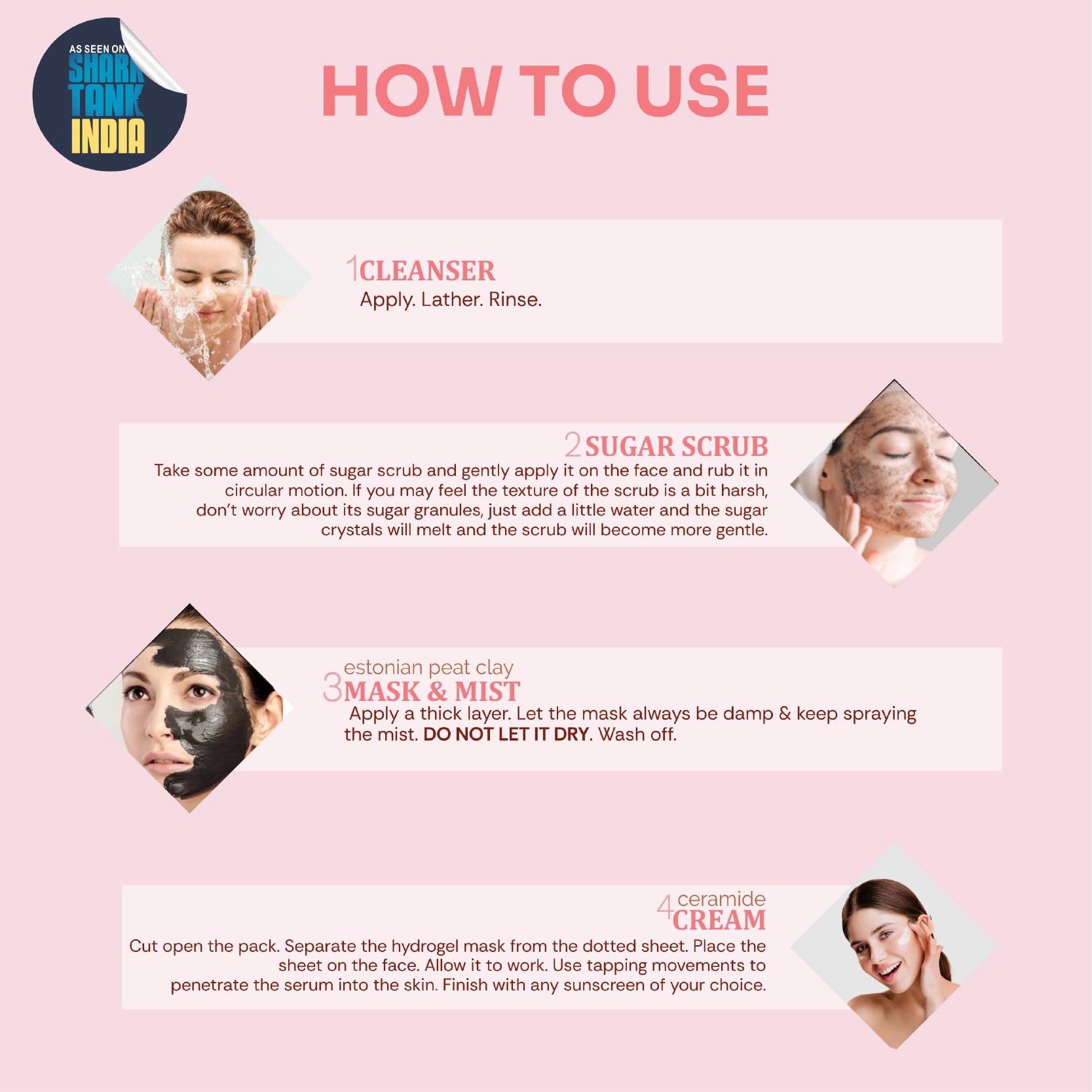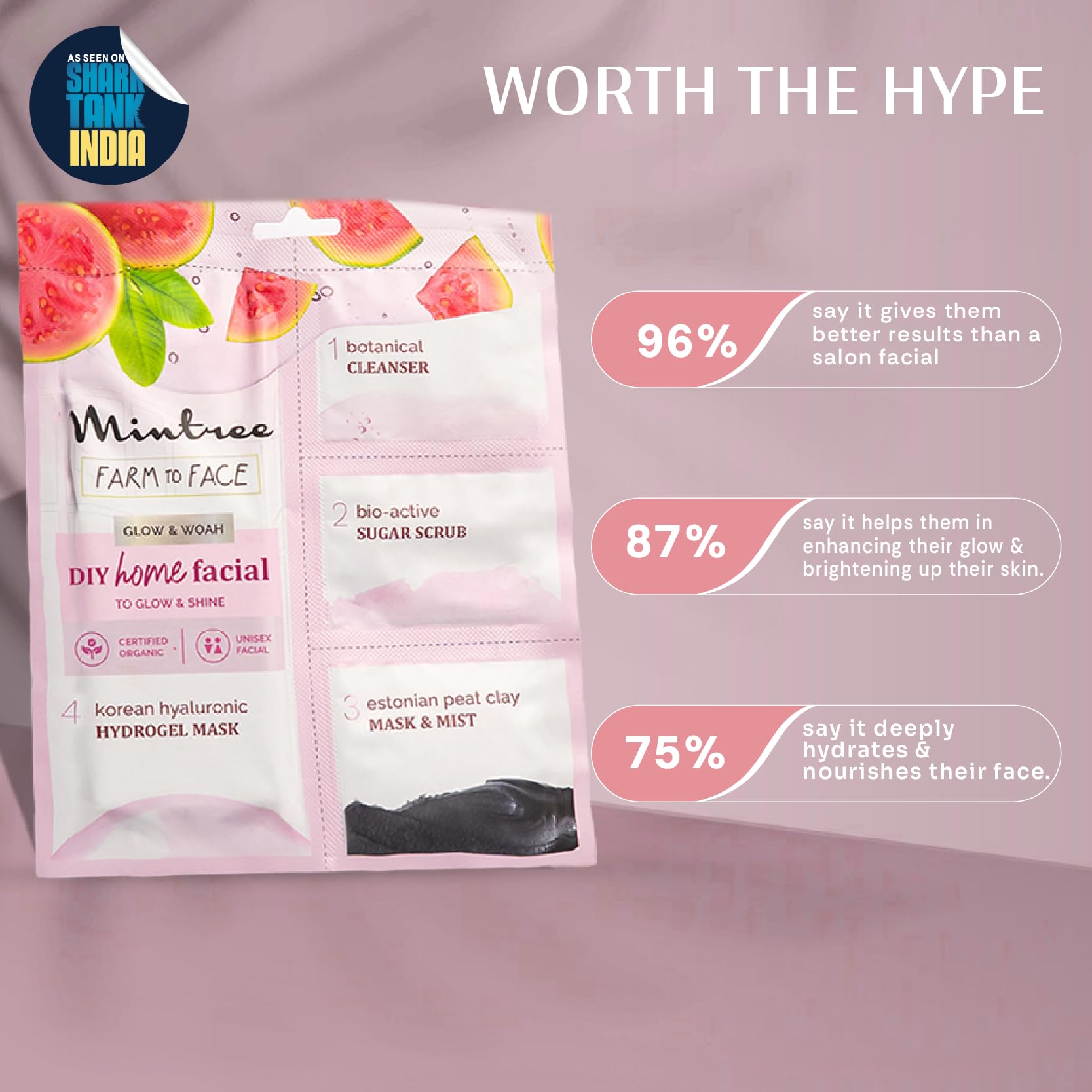 Mintree Organic Guava at Home Facial Kit for Women Korean Hydrogel Mask|DeTan & Anti Aging European Black Mask| Salon Like Glowing Skin in Easy 5 Steps| Brightens&Tightens