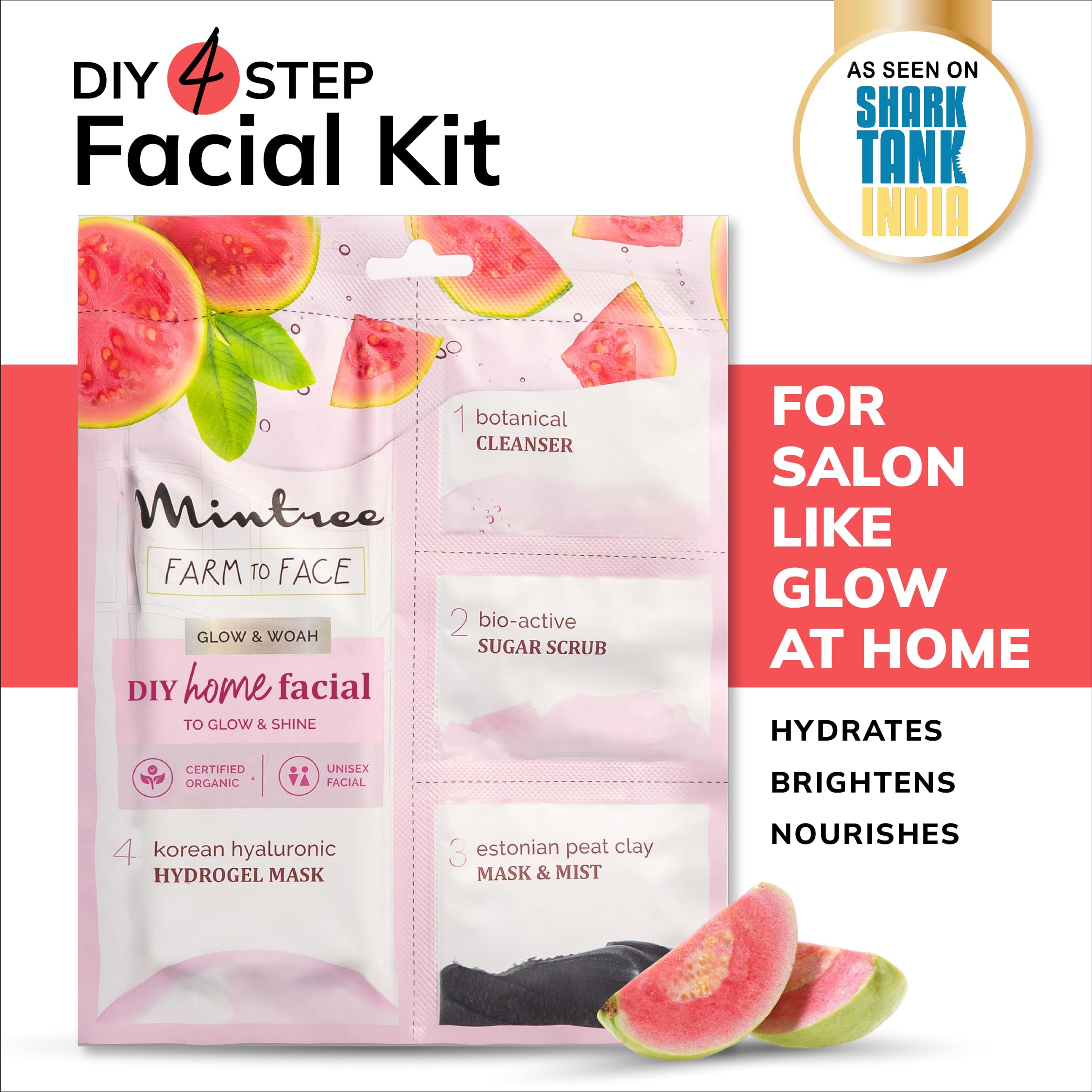 HomeBeautyFace CareFacial KitsMintree Organic Guava at Home Facial Kit for Women Korean Hydrogel Mask|DeTan & Anti Aging European Black Mask| Salon Like Glowing Skin in Easy 5 Steps| Brightens&Tightens