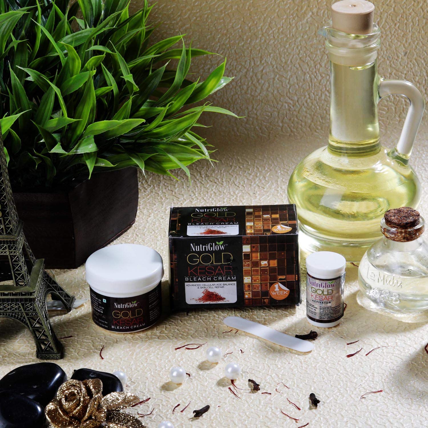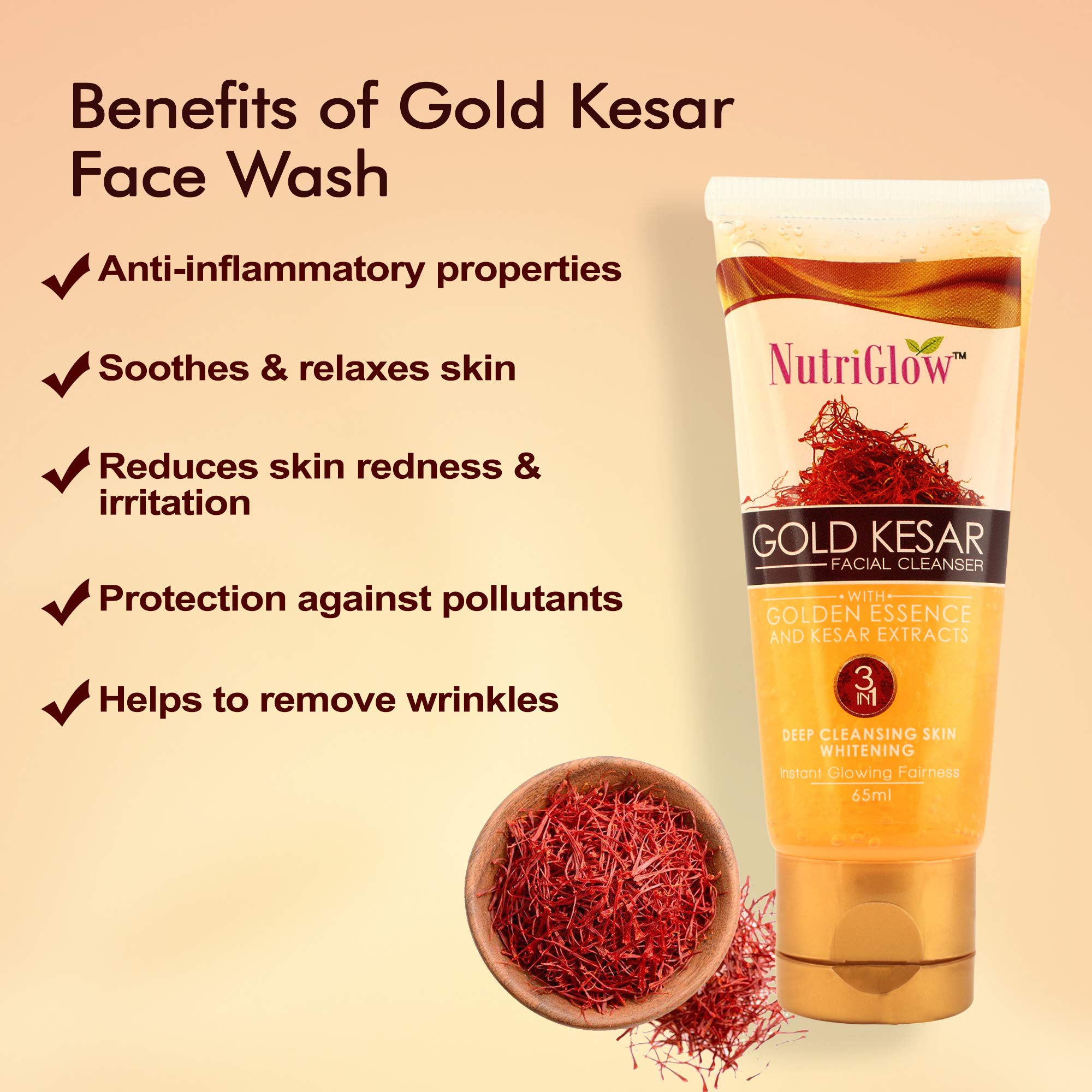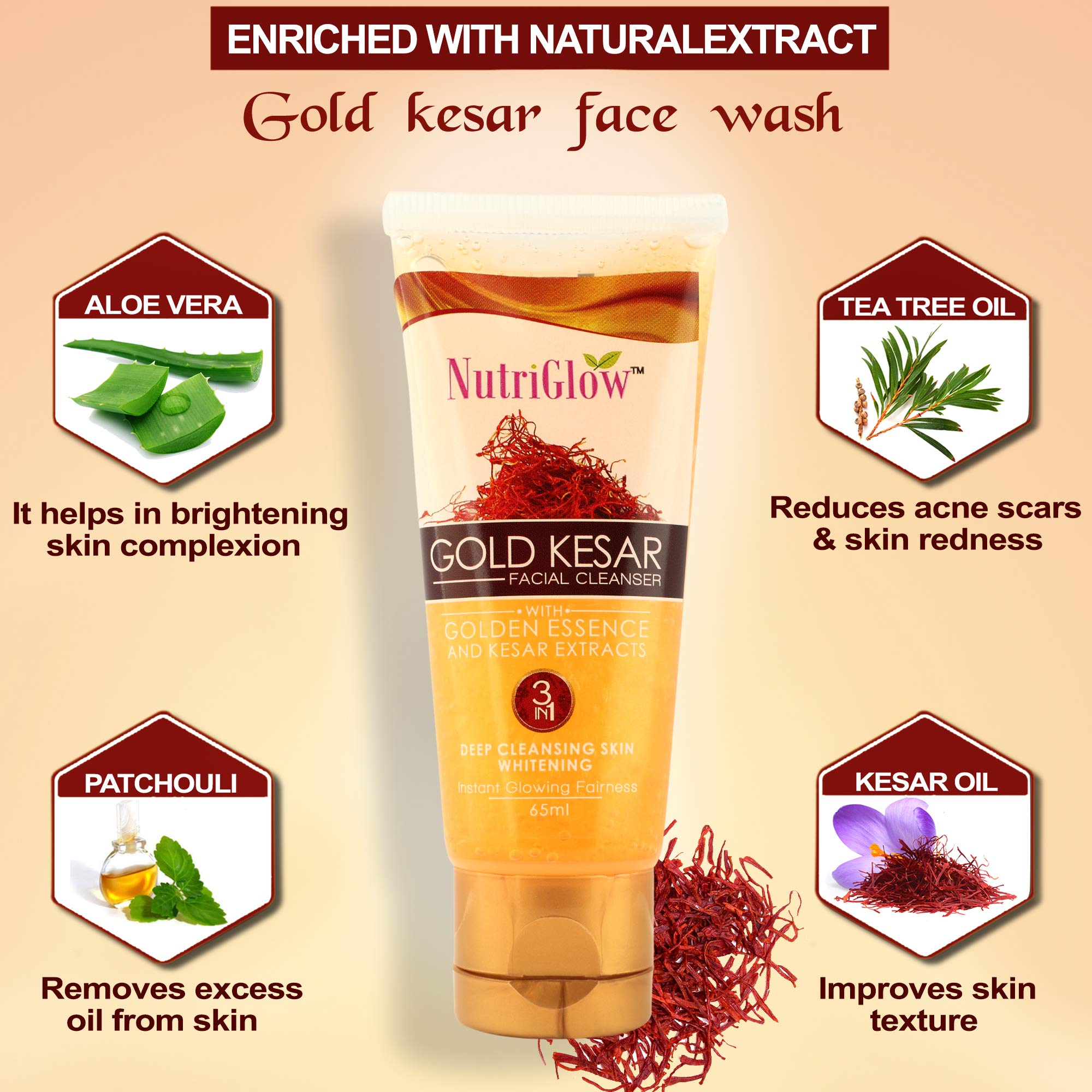 NutriGlow Gold Kesar Facial Kit (250gm + 10ml) with Bleach Cream (43gm) & Face Wash (65ml) All Skin Types (Pack Of 3)