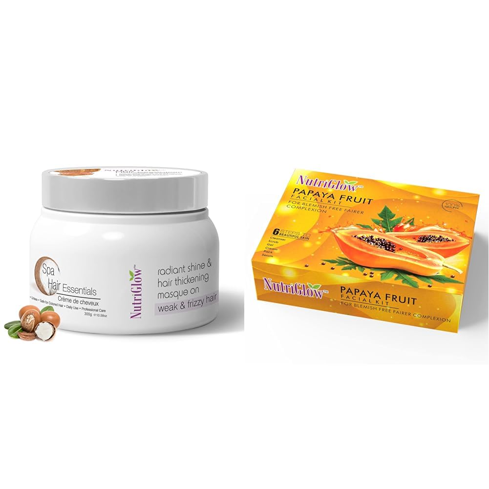 NutriGlow Hair Spa Cream With Volumizing & Shine Lock Formula For Weak & Frizzy Hair 300g & Papaya Fruit Facial Kit for Men Women for Glowing Skin (260 Gram - 10 ml)
