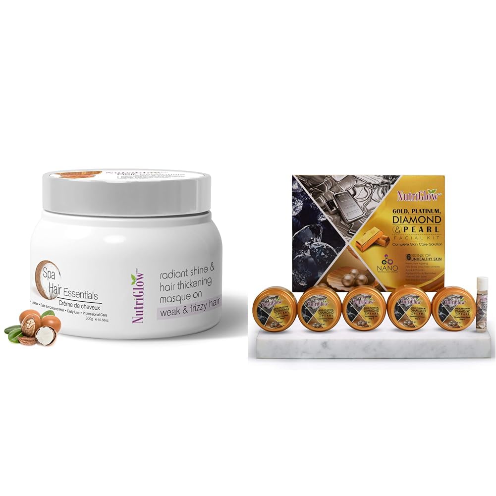 NutriGlow Hair Spa Cream With Volumizing & Shine Lock Formula For Weak & Frizzy Hair 300g & Platinum Diamond Gold and Pearl Facial kit 6-Pieces Skin Care Kit For Women 250 gm+10ml