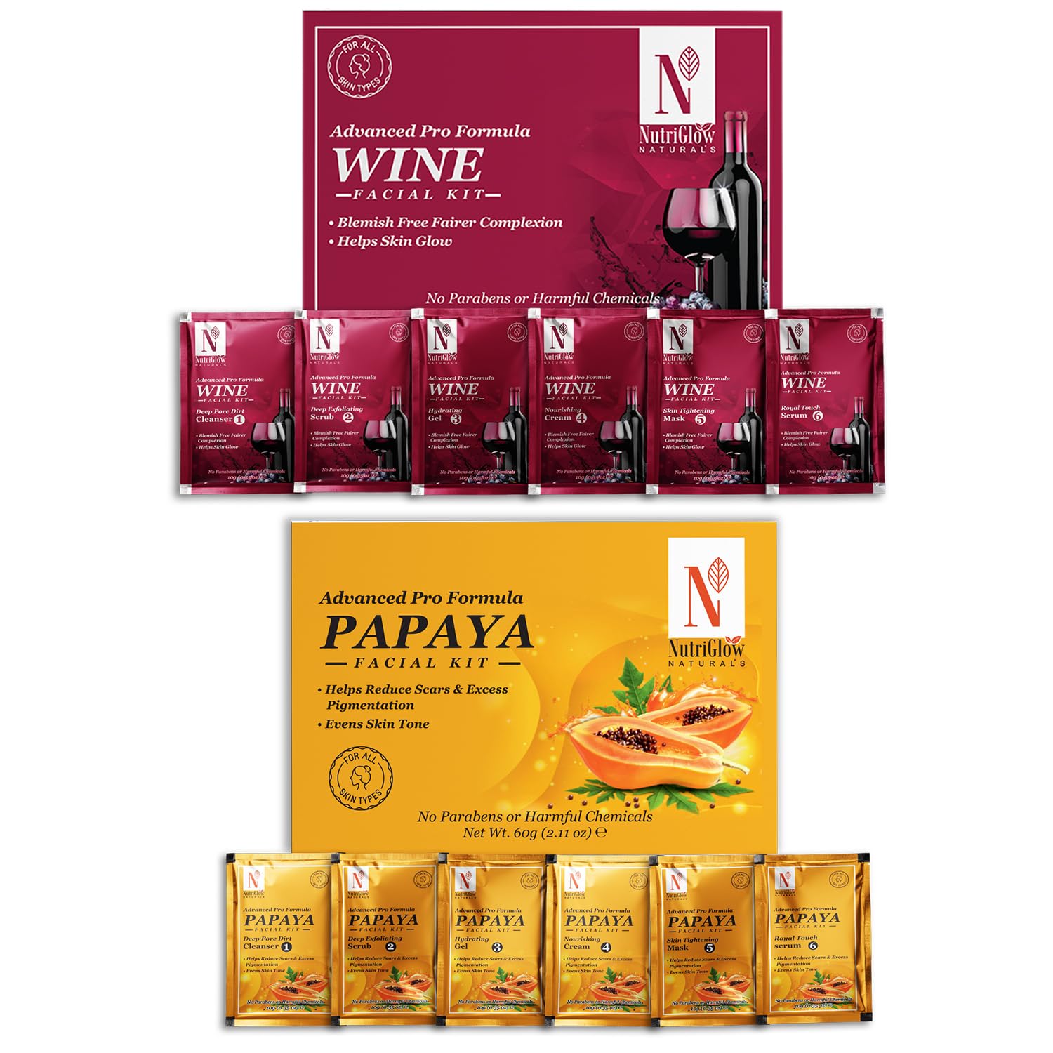 NutriGlow NATURAL'S Advance Pro Formula Wine & Papaya Facial Kit For Blemish Free - 60gm Each 2 x 60 g