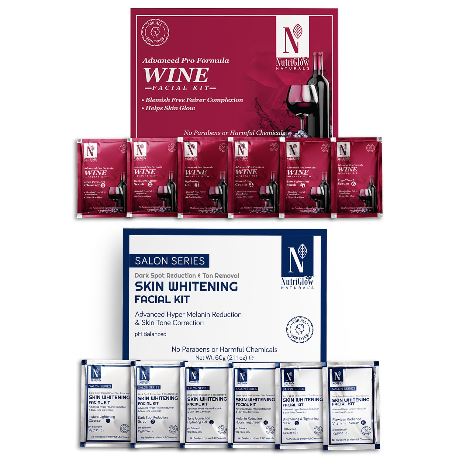 HomeBeautyFace CareFacial KitsNutriGlow NATURAL'S Advance Pro Formula Wine & Skin Whitening Facial Kit For Dark Spot Reduction & Tan Removal pH Balance - 60gm Each 2 x 60 g