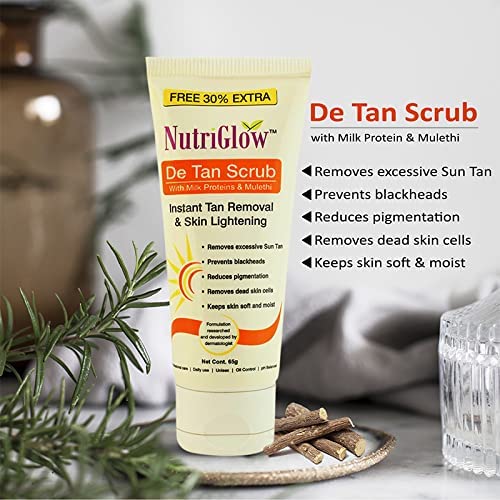 HomeBeautyFace CareFacial KitsNutriGlow NATURAL'S Advanced Pro Formula Gold Kesar Facial Kit (60gm) and De Tan Scrub (65gm) for Instant Tan Removal & Skin Lightening Pack of 2