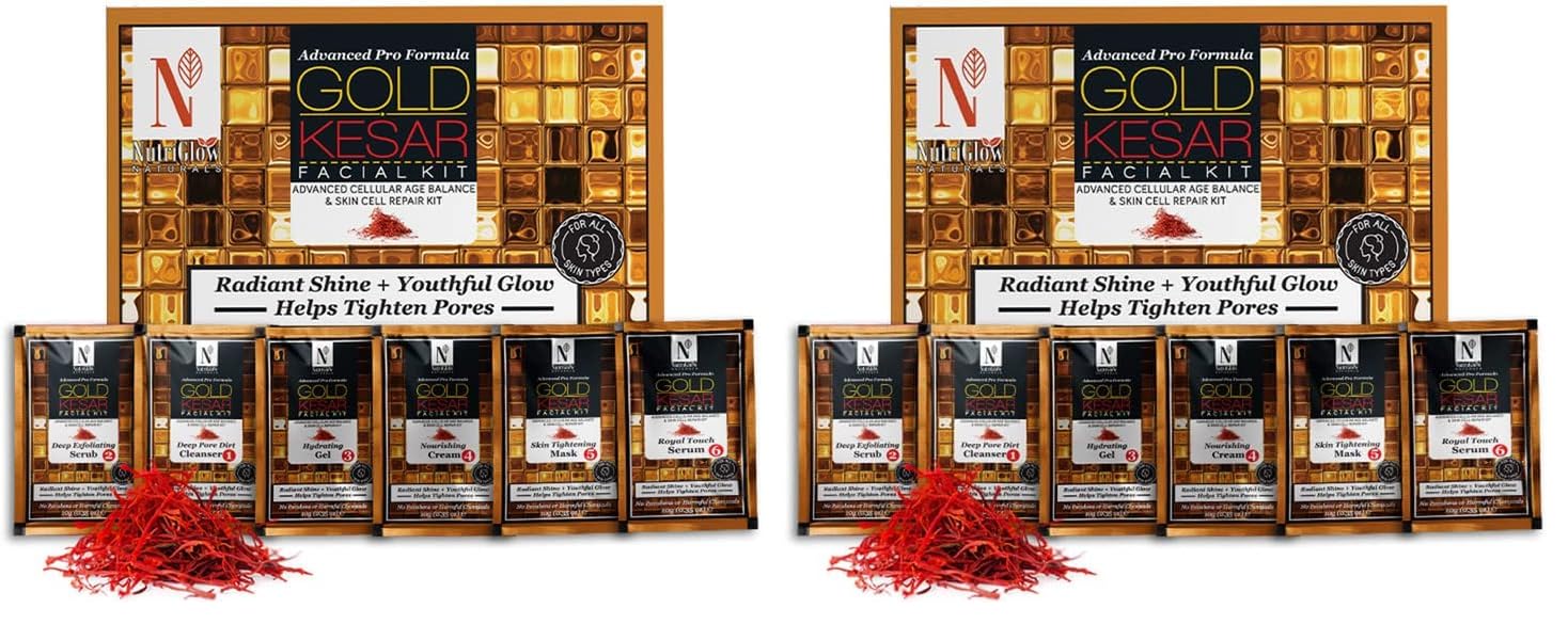 NutriGlow NATURAL'S Advanced Pro Formula Gold Kesar Facial Kit for Glowing Skin| Cleanup Kit for Radiant Shine| Helps Tighten Pores 60gm (Pack of 2)