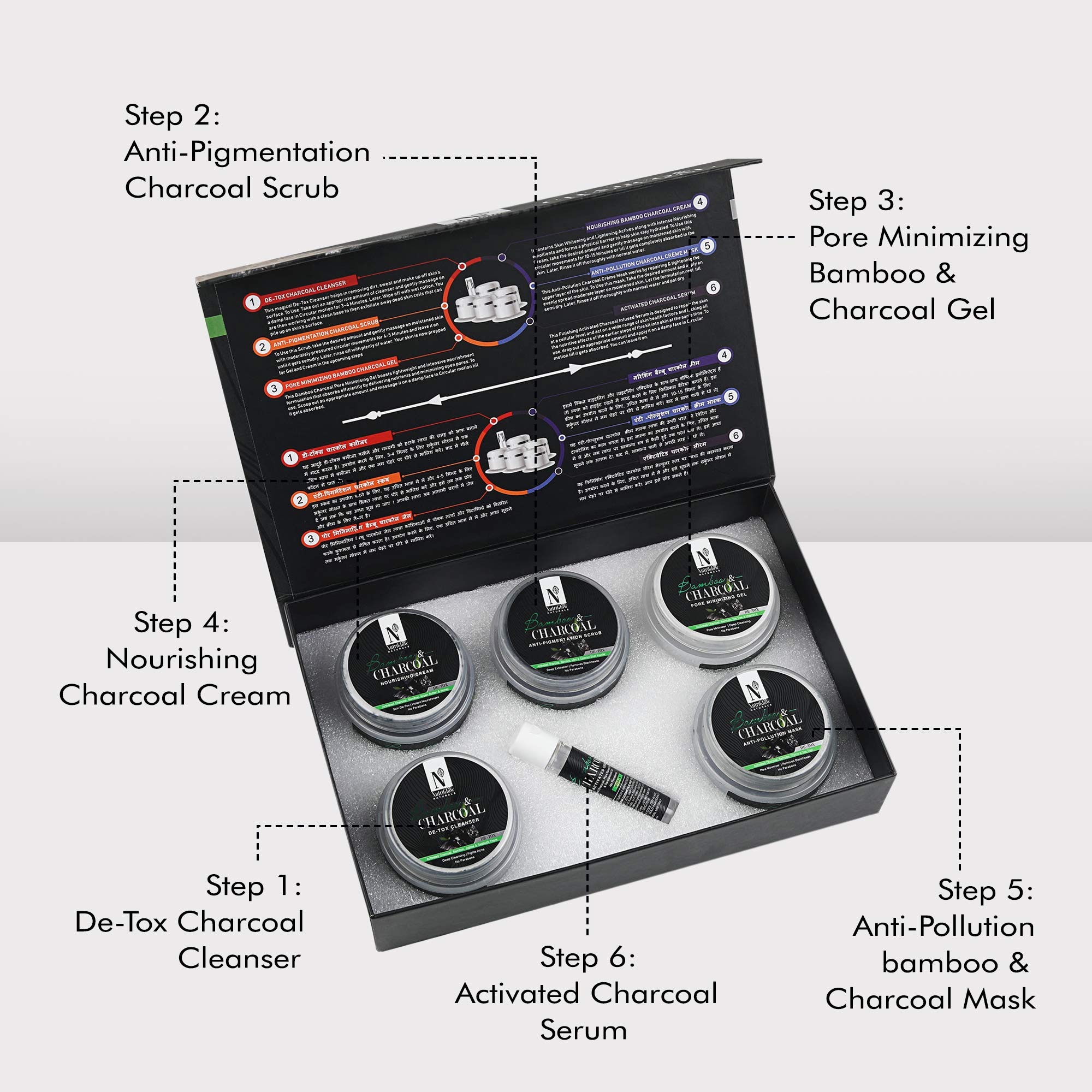 NutriGlow Natural's Bamboo Charcoal Facial Kit with Activated Charcoal for Deep Cleansing (250g+10ml)