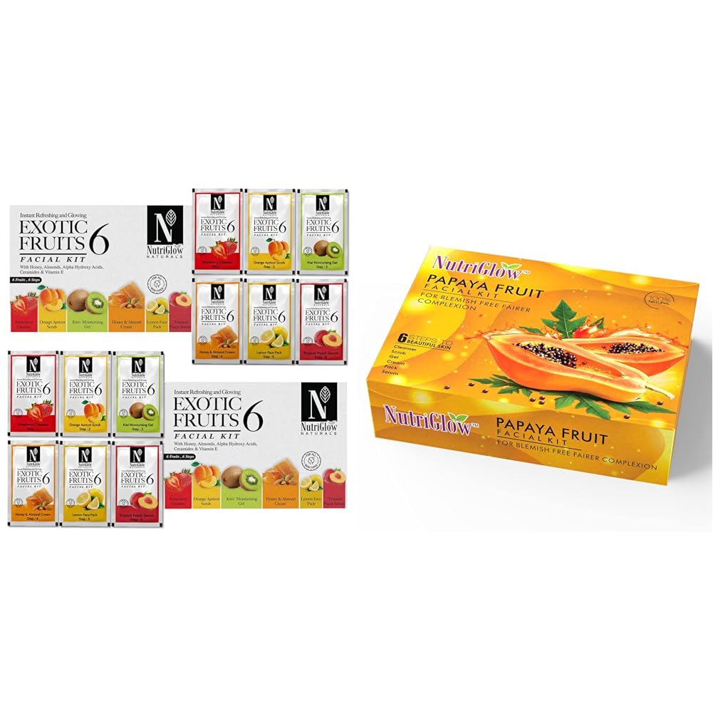 NutriGlow Natural's Exotic Fruit Facial Kit with Honey Vitamin E for Radiant GlowPack of 2 (60 Gm Each) & Papaya Fruit Facial Kit for Men Women for Glowing Skin (260 Gram - 10 ml)
