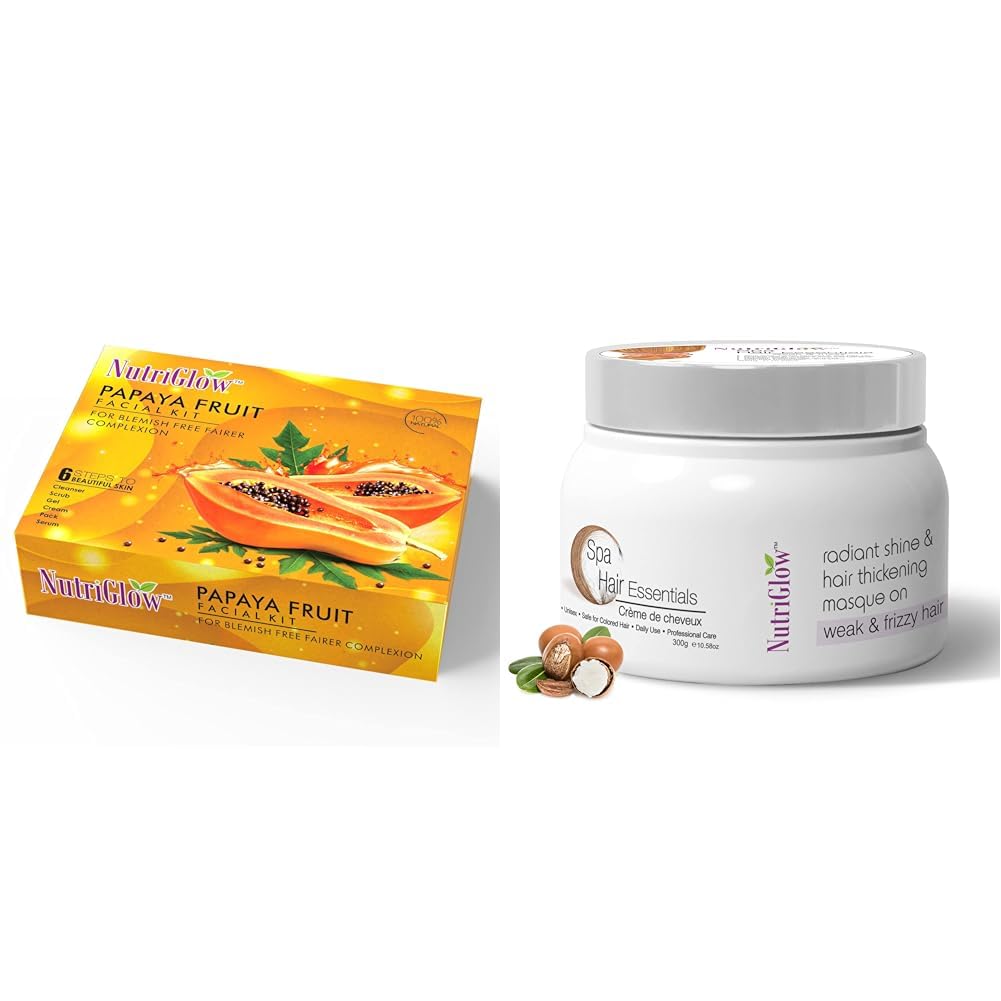 NutriGlow Papaya Fruit Facial Kit for Men Women for Glowing Skin (250 gm + 10 ml) & Hair Spa Cream With Volumizing & Shine Lock Formula For Weak & Frizzy Hair 300g