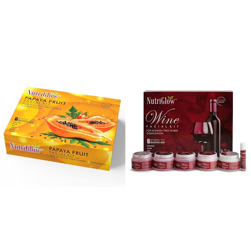 HomeBeautyFace CareFacial KitsNutriGlow Papaya Fruit Facial Kit for Men Women for Glowing Skin (250 gm + 10 ml) & Wine Facial Kit For Radiant Glow All Skin Types- 250g+10ml