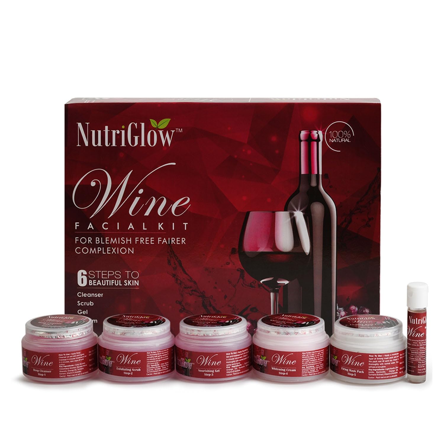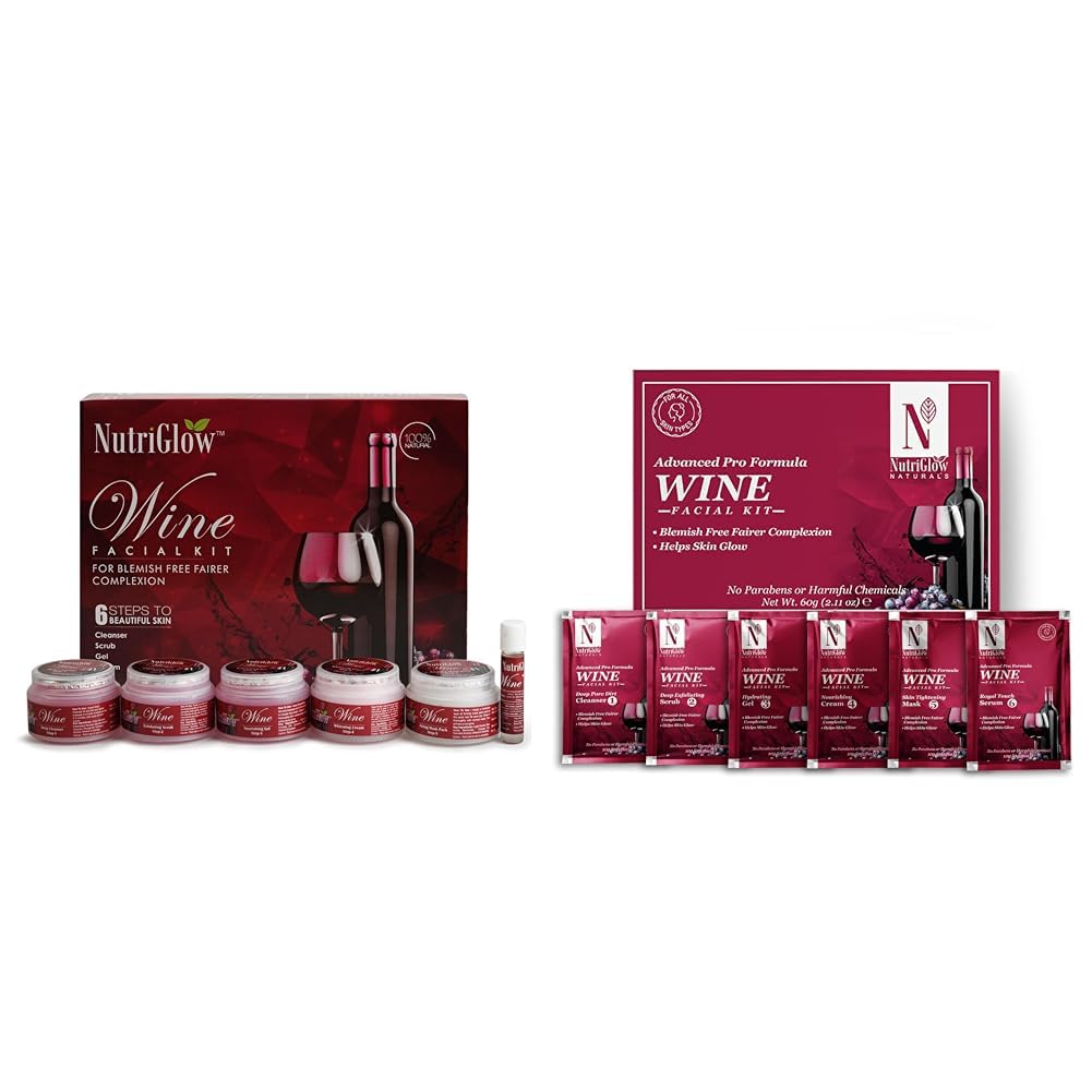 HomeBeautyFace CareFacial KitsNutriGlow Wine Facial Kit For Radiant Glow All Skin Types- 250g+10ml and NutriGlow NATURAL'S Advanced Pro Formula Wine Facial Cleanup Kit 60 GM