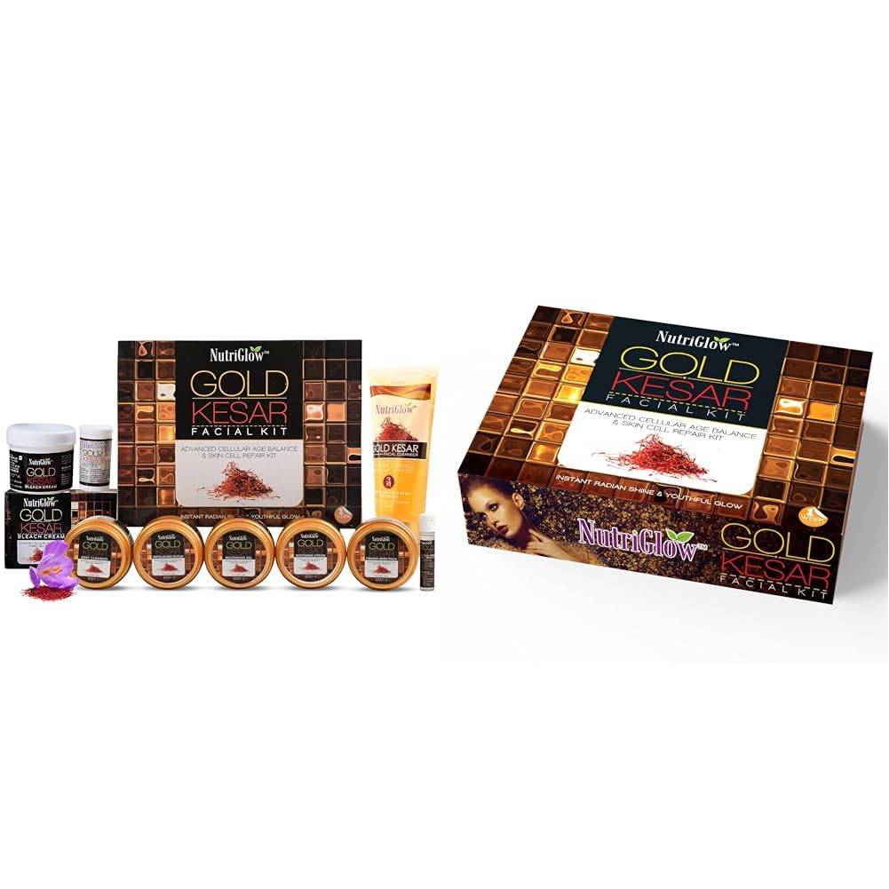 NutriGlowGold Kesar Facial Kit (250gm + 10ml) with Bleach Cream (43gm) & Face Wash (65ml)Gold Kesar Facial Kit for Women| 6-Piece Skin Care/Skin Cleanup Set | Targets Signs of Aging | 250g + 10ml