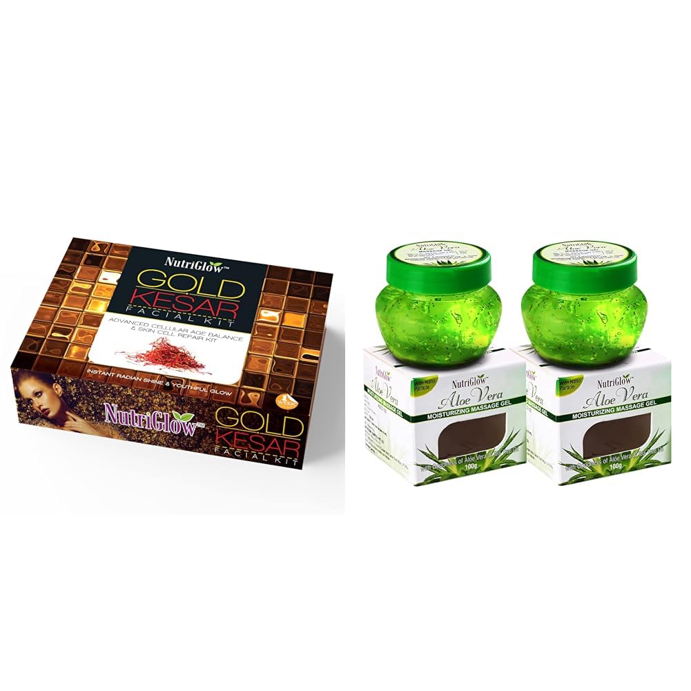 NutriGlowGold Kesar Facial Kit for Women| 6-Piece Skin CareAloe Vera Gel Great for Face Hair 100gm Each Pack of 2
