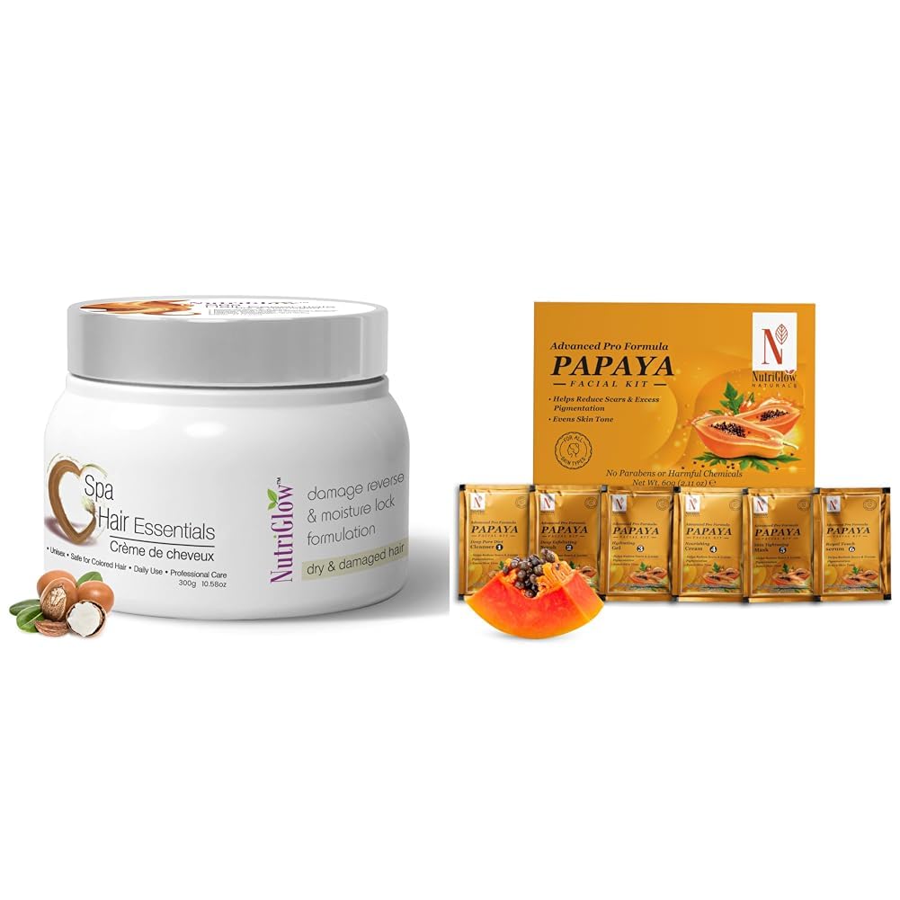 NutriGlowHair Spa Cream for Dry & Damaged Hair - 300gNATURAL'S Advanced Pro Formula Papaya Facial Kit for Glowing Skin Cleanup Kit for Even Skin Tone 60gm