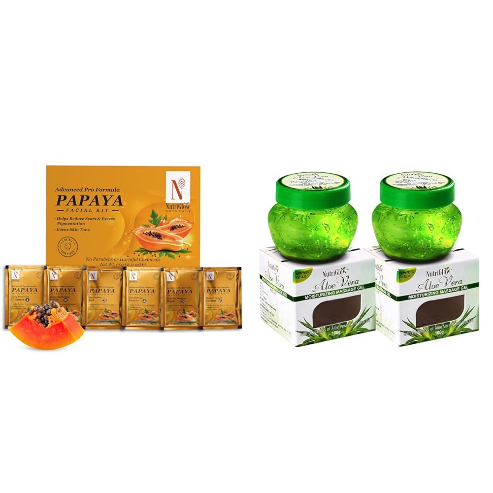 NutriGlowNATURAL'S Advanced Pro Formula Papaya Facial Kit 60gmAloe Vera Gel Great for Face Hair 100gm Each Pack of 2