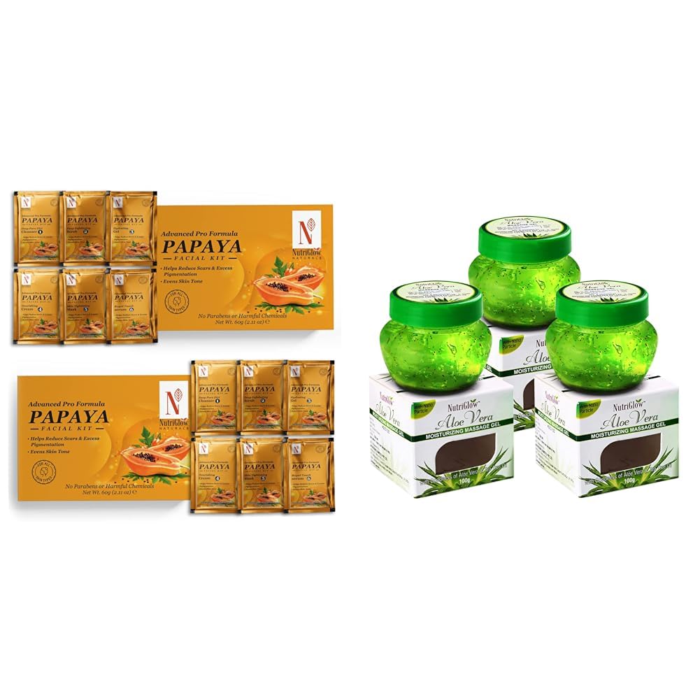 HomeBeautyFace CareFacial KitsNutriGlowNATURAL'S Advanced Pro Formula Papaya Facial Kit For Glowing Skin - 10gmx6 EachAloe Vera Gel Great For Face Hair 100gm Each Pack of 3