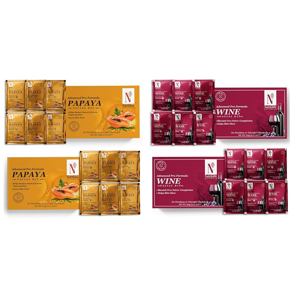 NutriGlowNATURAL'S Advanced Pro Formula Papaya Facial Kit For Glowing Skin - 10gmx6 EachNATURAL'S Advanced Pro Formula Wine Facial Cleanup Kit 60 gm ( Pack of 2 )