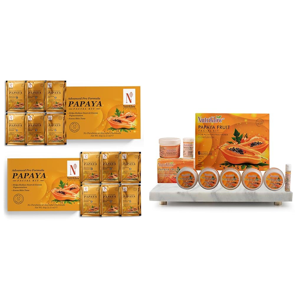 NutriGlowNATURAL'S Advanced Pro Formula Papaya Facial Kit For Glowing Skin - 10gmx6 EachPapaya Fruit Facial Kit(250gm + 10ml) & Papaya Fruit Beach Cream(43gm) Pack of 2