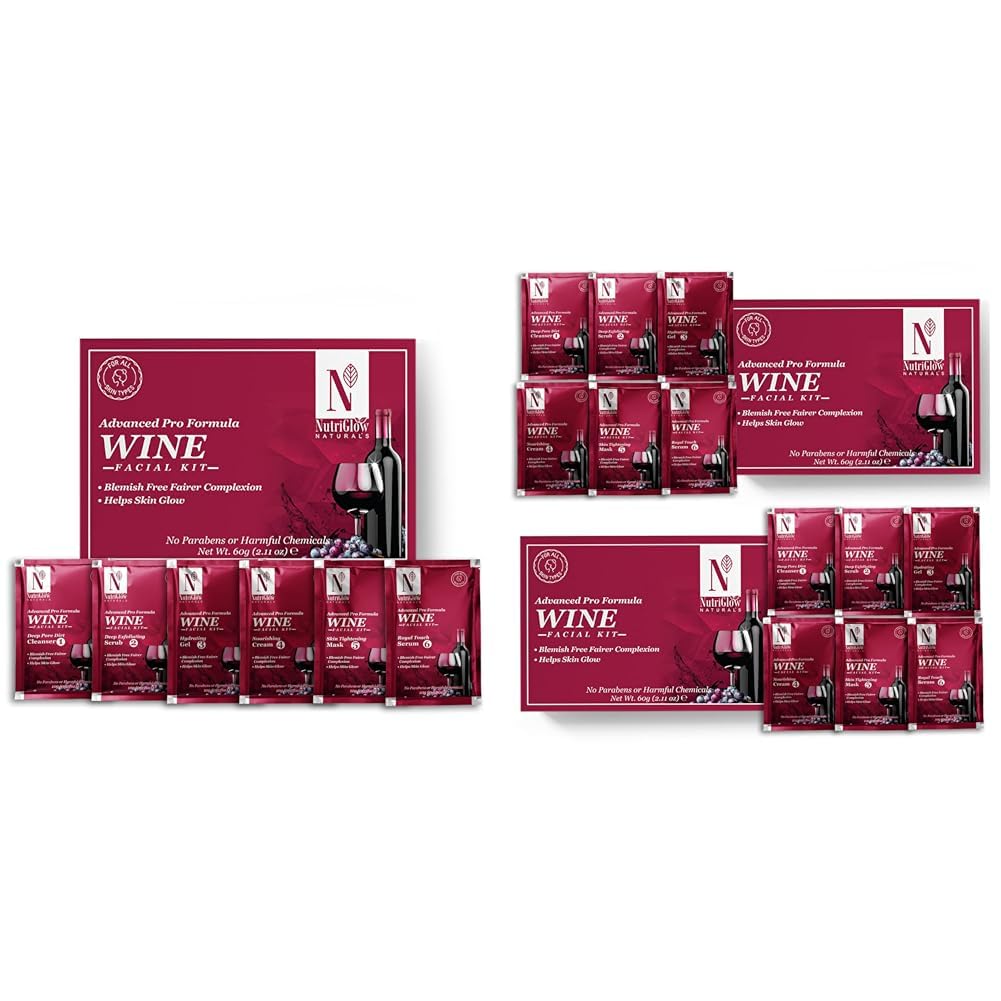 NutriGlowNATURAL'S Advanced Pro Formula Wine Facial Cleanup Kit 60 GMNATURAL'S Advanced Pro Formula Wine Facial Kit for Blemish Free Fairer Complexion & Helps Skin Glow 10gm x 6 Each Pack of 2