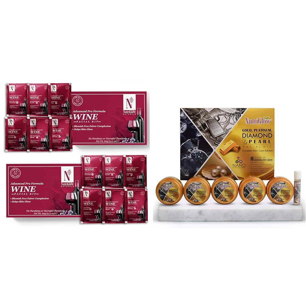NutriGlowNATURAL'S Advanced Pro Formula Wine Facial Cleanup Kit With Goodness Of Red Grape Extracts 60 gm ( Pack of 2 )Platinum Diamond Gold and Pearl Facial kit 6-Pieces Skin Care Kit