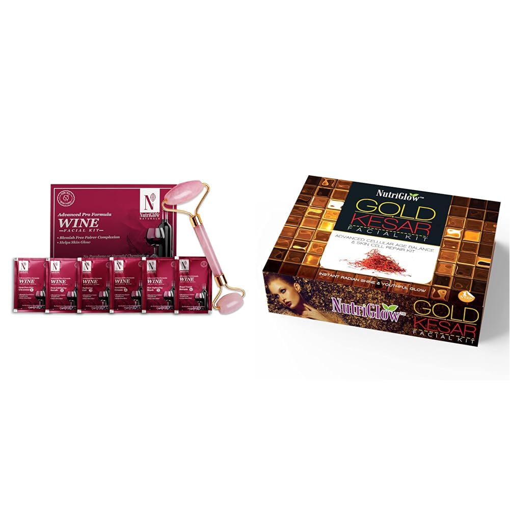 NutriGlowNATURAL'S Advanced Pro Formula Wine Facial Cleanup Kit with Jade RollerGold Kesar Facial Kit for Women| 6-Piece Skin Care/Skin Cleanup Set | Targets Signs of Aging | 250g + 10ml
