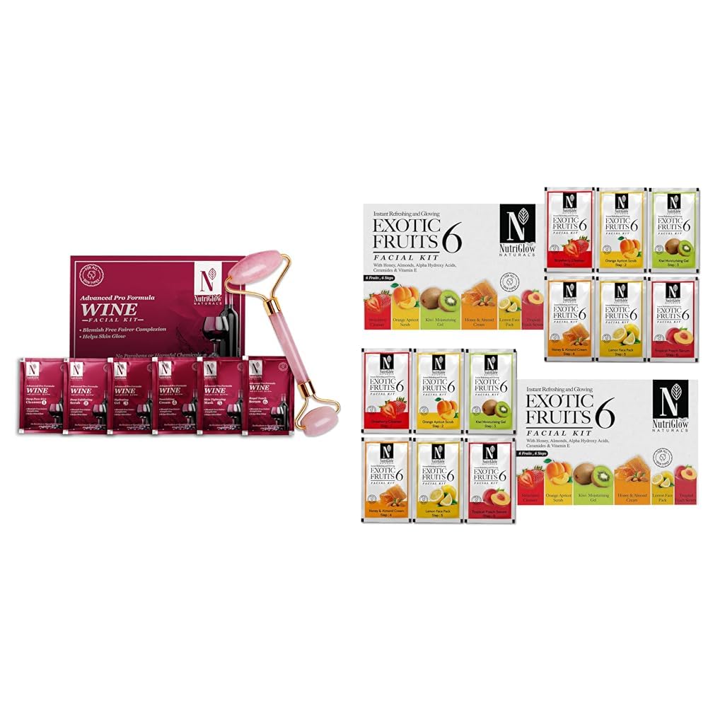 NutriGlowNATURAL'S Advanced Pro Formula Wine Facial Cleanup Kit with Jade RollerNatural's Exotic Fruit Facial Kit with Honey Vitamin E for Radiant GlowPack of 2 (60 Gm Each)