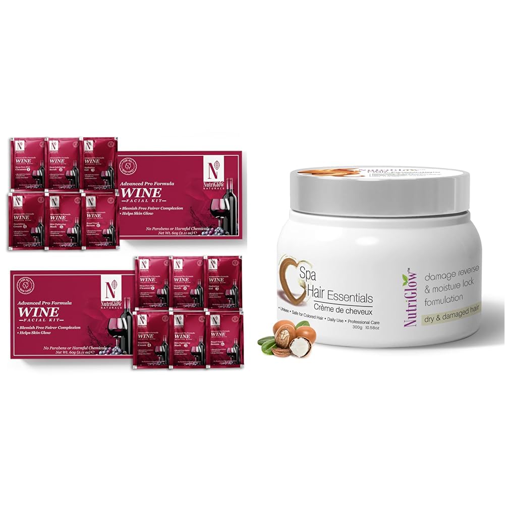 NutriGlowNATURAL'S Advanced Pro Formula Wine Facial Kit Pack of 2Hair Spa Cream with Damage Reverse & Moisture Lock Formulation for Dry & Damaged Hair - 300g