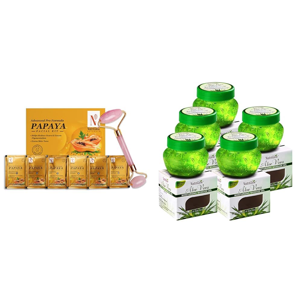 NutriGlowNATURAL'S Papaya Facial Kit With Jade RollerAloe Vera Gel Great for Face Hair 100gm Each Pack of 5