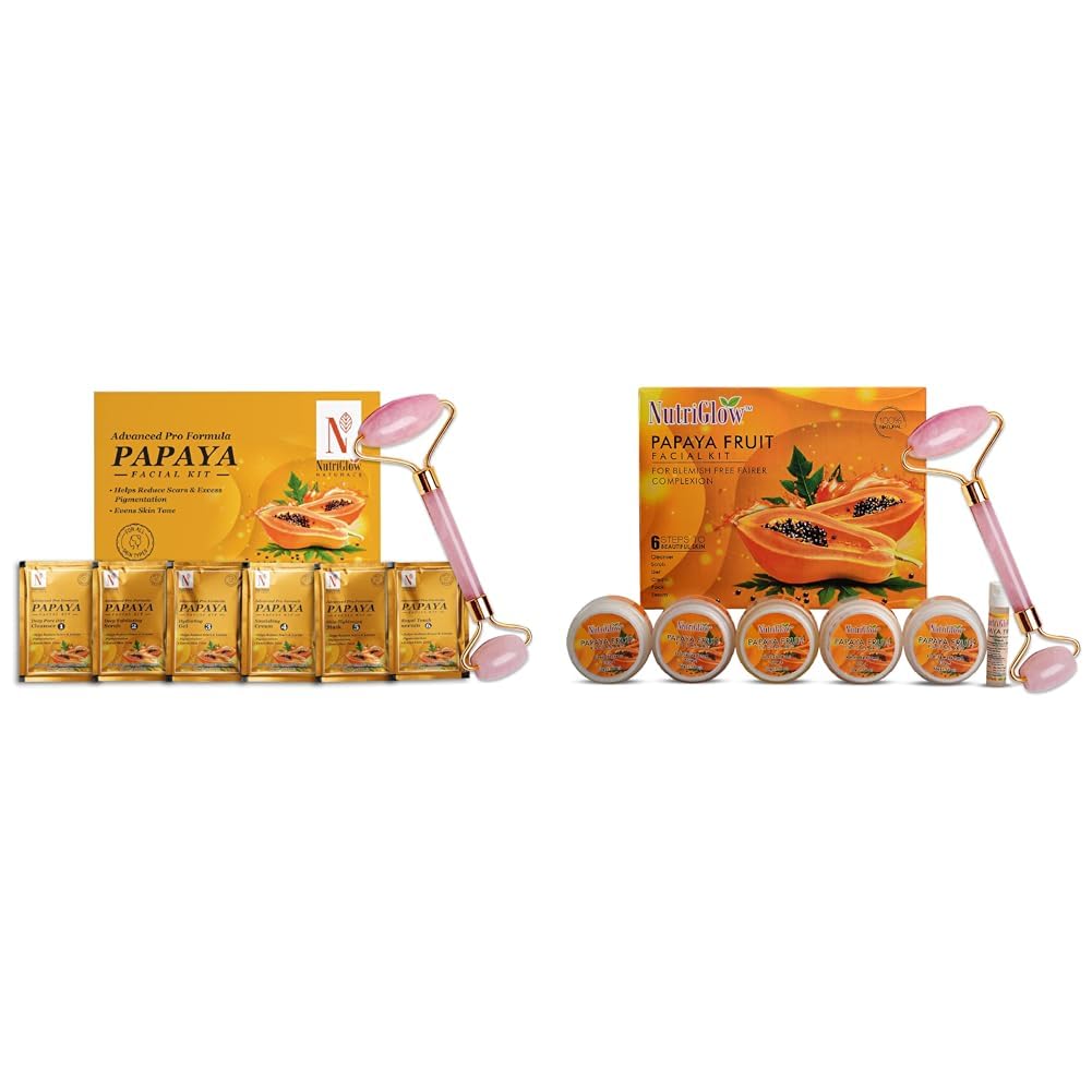 NutriGlowNATURAL'S Papaya Facial Kit With Jade RollerPapaya Facial Kit For Blemish Free and Fairer Skin Hydrated & Brightening Fresh Looking Skin 250gm+10ml With Jade Roller
