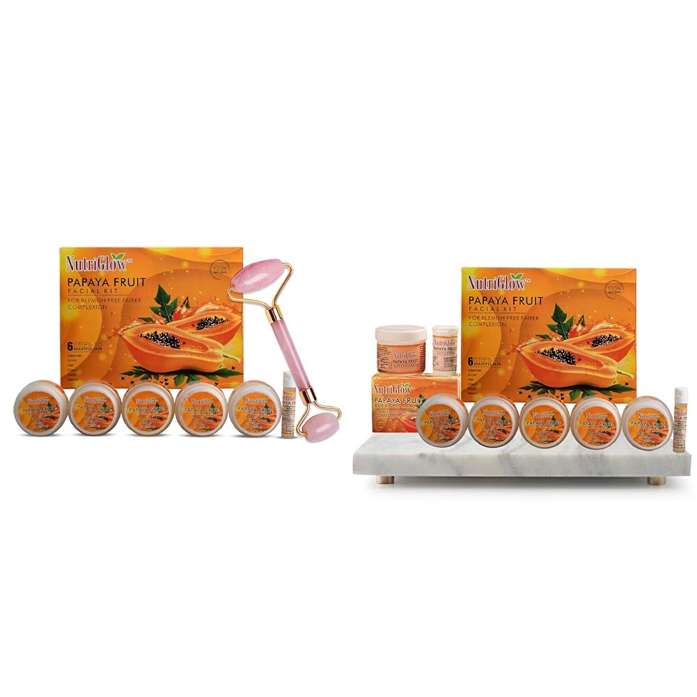 NutriGlowPapaya Facial Kit For Blemish Free and Fairer Skin Hydrated & Brightening Fresh Looking Skin With Jade RollerPapaya Fruit Facial Kit(250gm + 10ml) & Papaya Fruit Beach Cream(43gm) Pack of 2