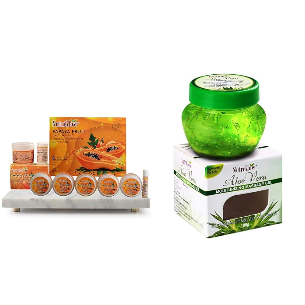 NutriGlowPapaya Fruit Facial Kit(250gm + 10ml) & Papaya Fruit Beach Cream(43gm)Aloe Vera Gel Great for Face Hair 100gm