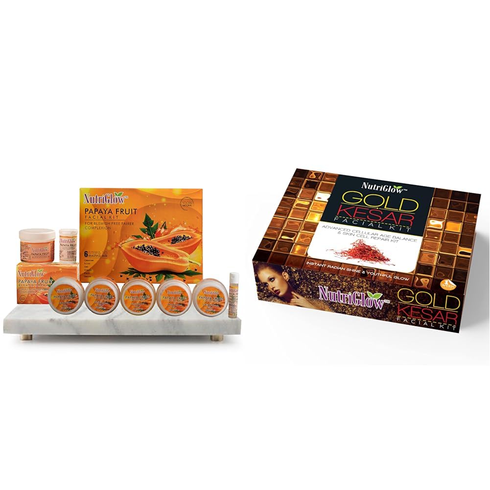 NutriGlowPapaya Fruit Facial Kit(250gm + 10ml) & Papaya Fruit Beach Cream(43gm)Gold Kesar Facial Kit for Women| 6-Piece Skin Care/Skin Cleanup Set | Targets Signs of Aging | 250g + 10ml