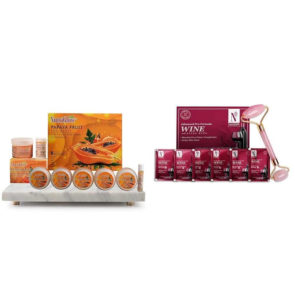 NutriGlowPapaya Fruit Facial Kit(250gm + 10ml) & Papaya Fruit Beach Cream(43gm)NATURAL'S Advanced Pro Formula Wine Facial Cleanup Kit for Glowing Skin 60gm with Jade Roller