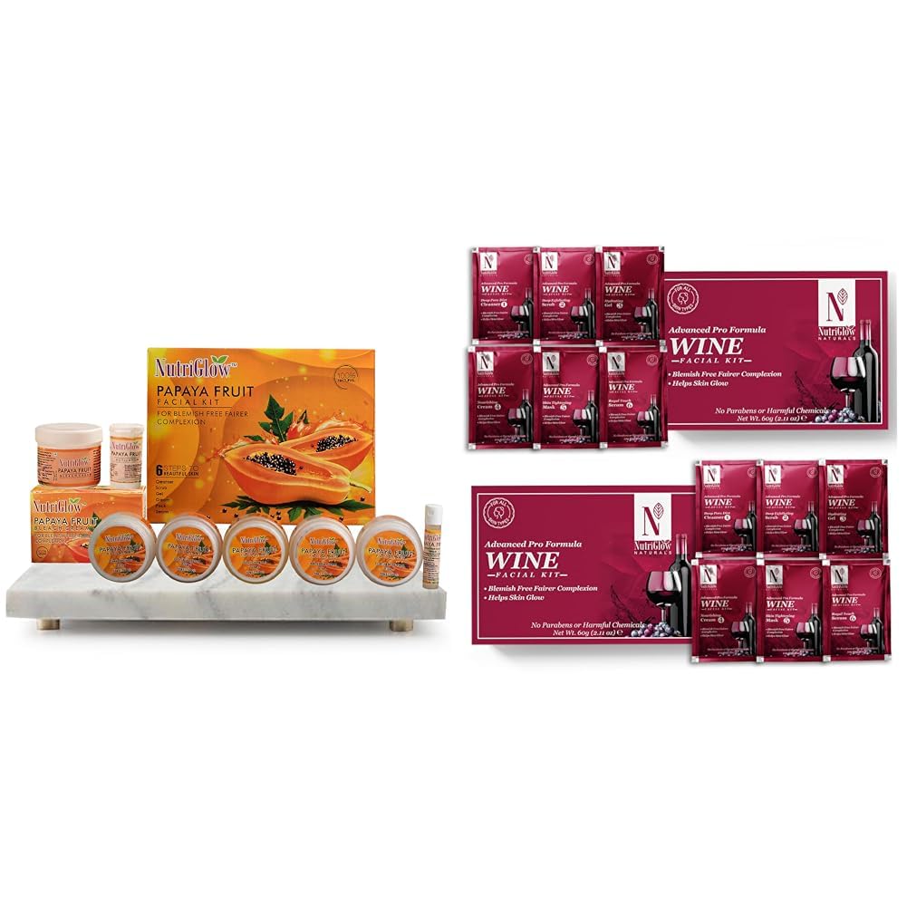 HomeBeautyFace CareFacial KitsNutriGlowPapaya Fruit Facial Kit(250gm + 10ml) & Papaya Fruit Beach Cream(43gm)NATURAL'S Advanced Pro Formula Wine Facial Kit Pack of 2