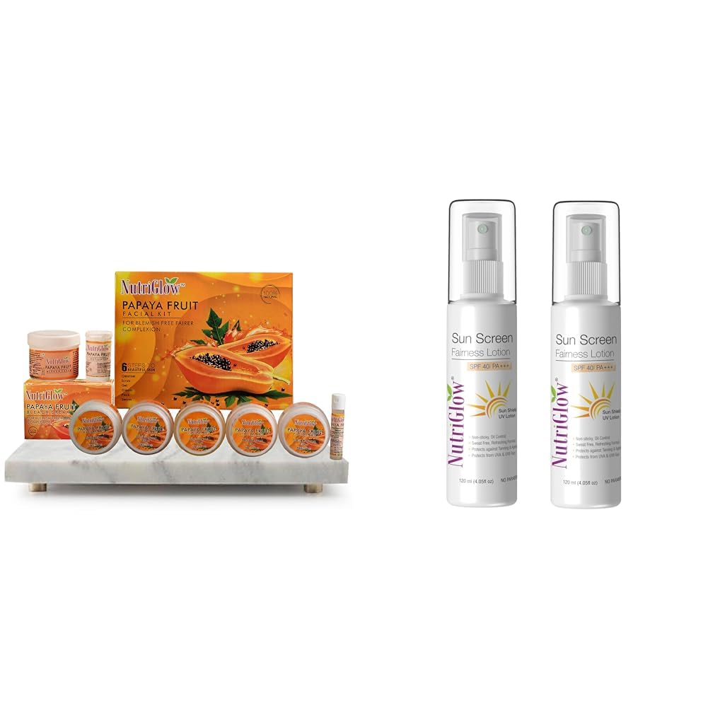 NutriGlowPapaya Fruit Facial Kit(250gm + 10ml) & Papaya Fruit Beach Cream(43gm)Sunscreen Lotion SPF 40 & PA+++ 120ml (Pack of 2)