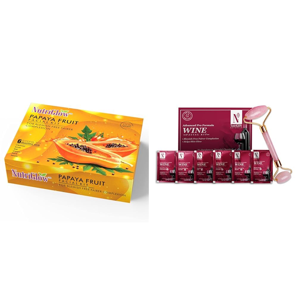 NutriGlowPapaya Fruit Facial KitNATURAL'S Advanced Pro Formula Wine Facial Cleanup Kit for Glowing Skin Blemish Free Remove Blackheads Fairer Complexion 60gm with Jade Roller