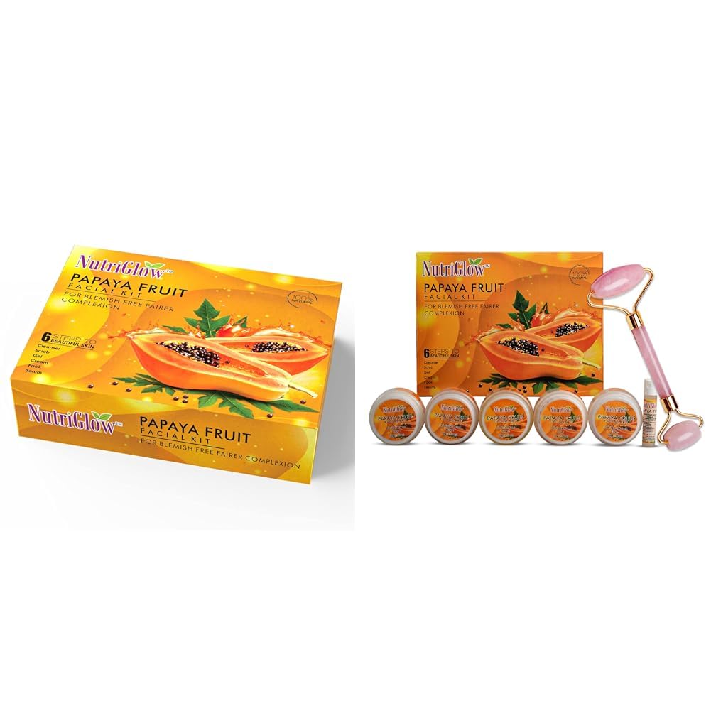 NutriGlowPapaya Fruit Facial KitPapaya Facial Kit For Blemish Free and Fairer Skin Hydrated & Brightening Fresh Looking Skin All Skin Types No Parabens & Sulphates 250gm+10ml With Jade Roller