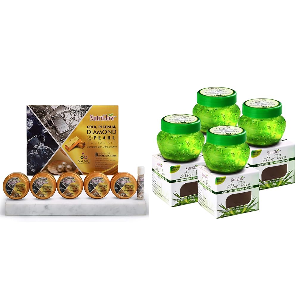 HomeBeautyFace CareFacial KitsNutriGlowPlatinum Diamond Gold and Pearl Facial kit 6-Pieces Skin Care Kit Aloe Vera Gel for Face Hair 100 gm Each Pack of 4