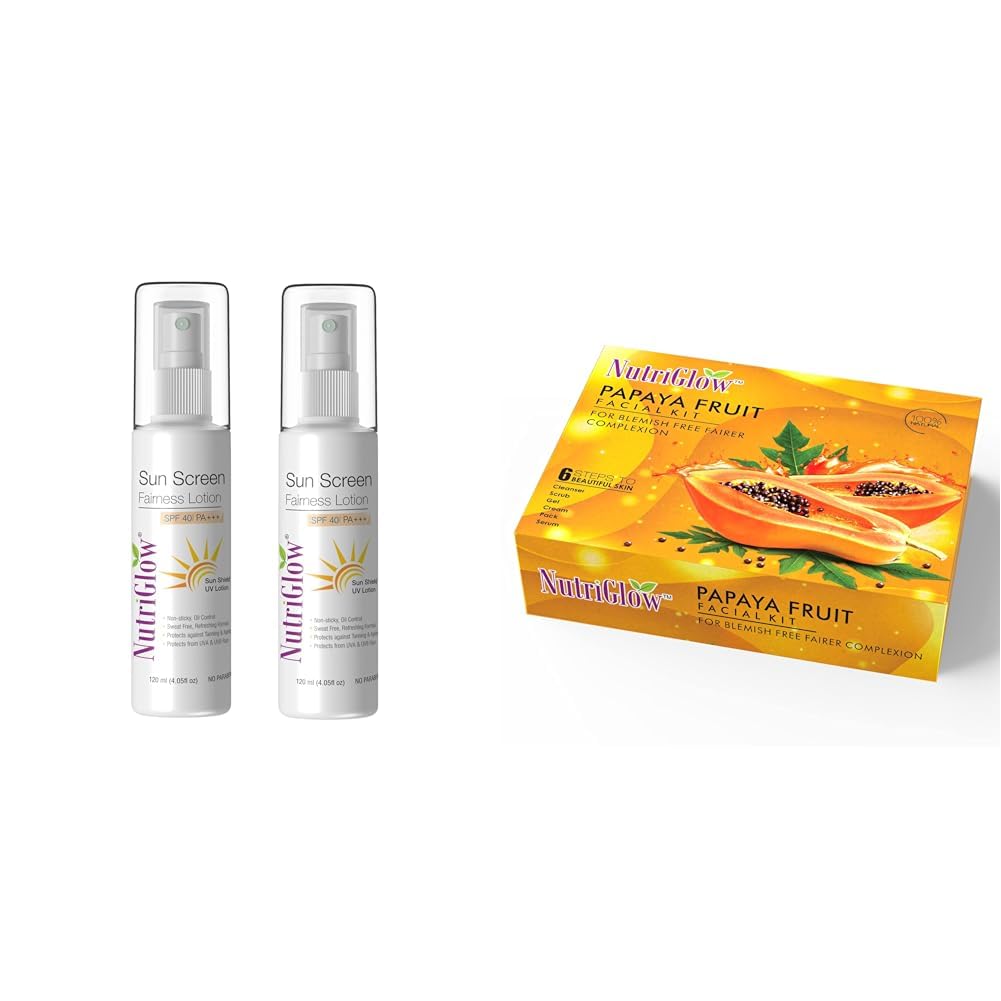 HomeBeautyFace CareFacial KitsNutriGlowSunscreen Lotion SPF 40 & PA+++ (Pack of 2) Papaya Fruit Facial Kit for Men Women for Glowing Skin (260 Gram - 10 ml)