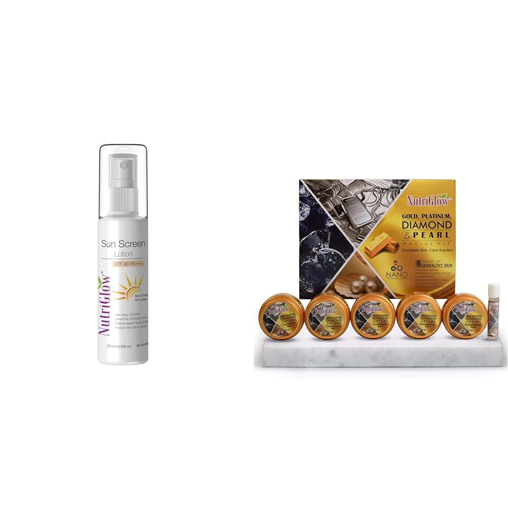 HomeBeautyFace CareFacial KitsNutriGlowSunscreen Lotion SPF 40 & PA+++Platinum Diamond Gold and Pearl Facial kit 6-Pieces Skin Care Kit For Women 250 gm+10ml