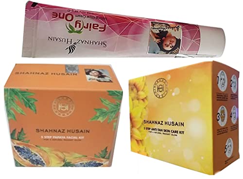 5 Step Anti-Tan Skin Care Kit 50g for a natural radiant glow ( P.P.Bio-Hydrating Cleanse Exfoliating Scrub Whitening Mask Whitening Serum Sun Block (SPF-25). 5 Step Papaya Facial Kit ( P.P.Bio-Hydrating Cleanse Exfoliating Scrub Papaya Nourishing Cream Papaya Face Pack Papaya Moisturizer) FAIRY ONE Natural Glow Cream is a unique blend of seven natural extracts like Rose Aloe Vera Cucumber Wheat germ oil Bearberry Grape Seed & Saffron. The unique formulation acts on melanin formation prevents pigmentation rejuvenates moisturizes and nourishes the skin keeping it smooth and supple. It also protects your skin from sunburn leaving it soft young and glowing..