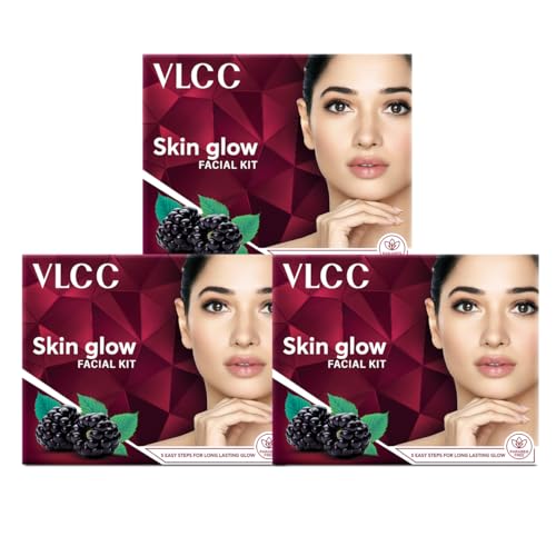 VLCC Skin Glow Facial Kit - 25g X 3 (75g) (Pack of 3) | Promotes Cell Renewal, Helps Brighten Complexion, Even Tone Skin | Smoothens Uneven Skin Texture| With Aloe Vera, Cucumber, Saffron & Mullbery.