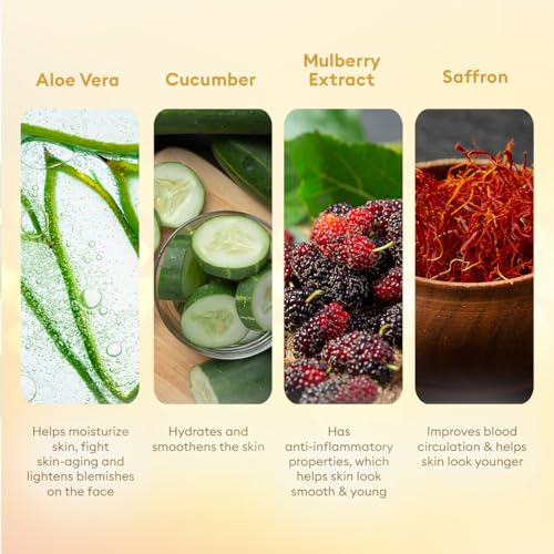 • Mulberry & Nutmeg Extract Eliminates age spots and Saffron and Cucumber help treat hyperpigmentation.