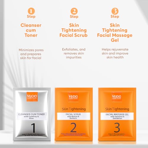 VLCC Skin Tightening Facial Kit - 25g X 3 (75g) (Pack of 3) | Skin Elasticity Facial | Helps Remove Toxins, Dead Skin and Reduces Blemishes | With Berberry, Wheatgerm, Carrot Extract, and Geranium