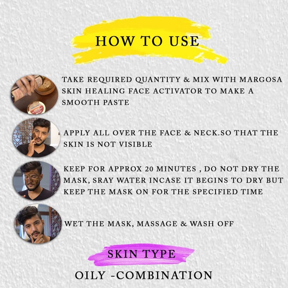 APPLICATIONThis skin healing face ubtan is made to be applied in the face. This herbal ayurvedic ubton is a highly nutritious mask and is ideal to be used four to five days a week